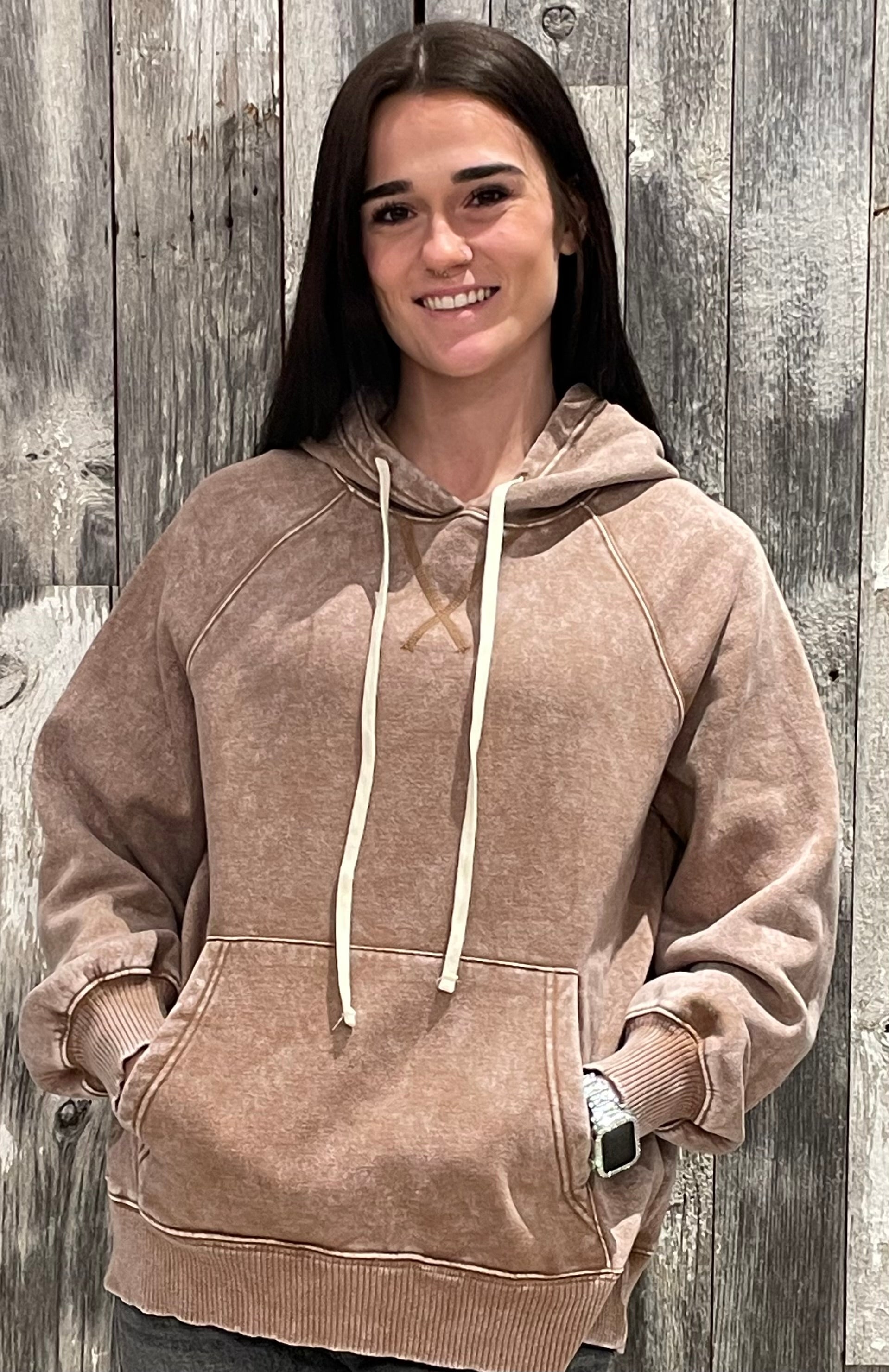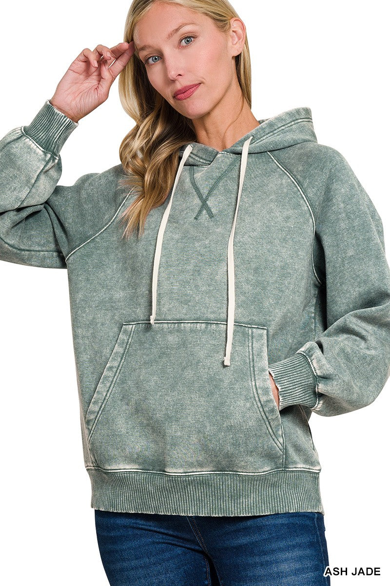 Acid Wash Fleece Hoodie With Pockets