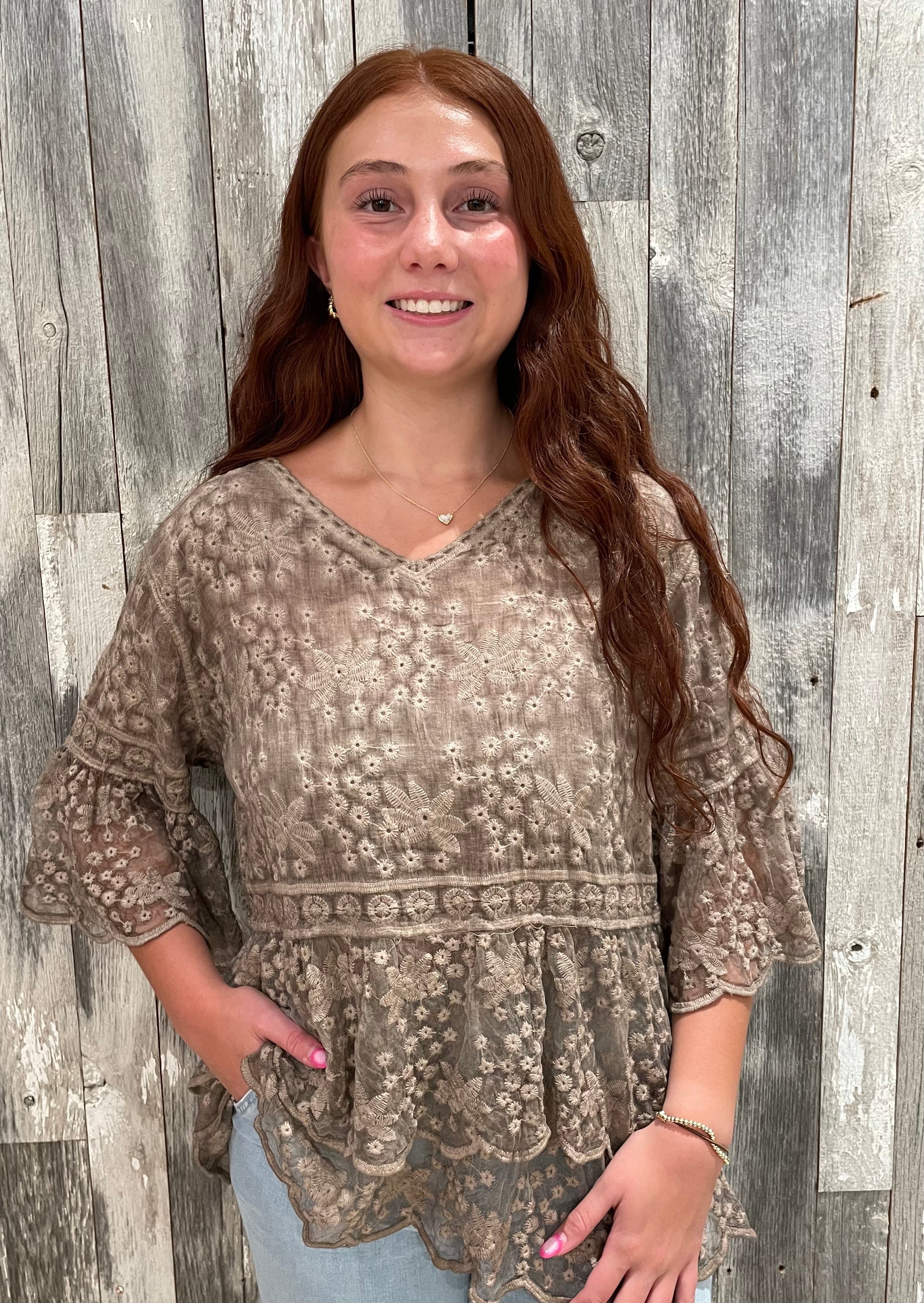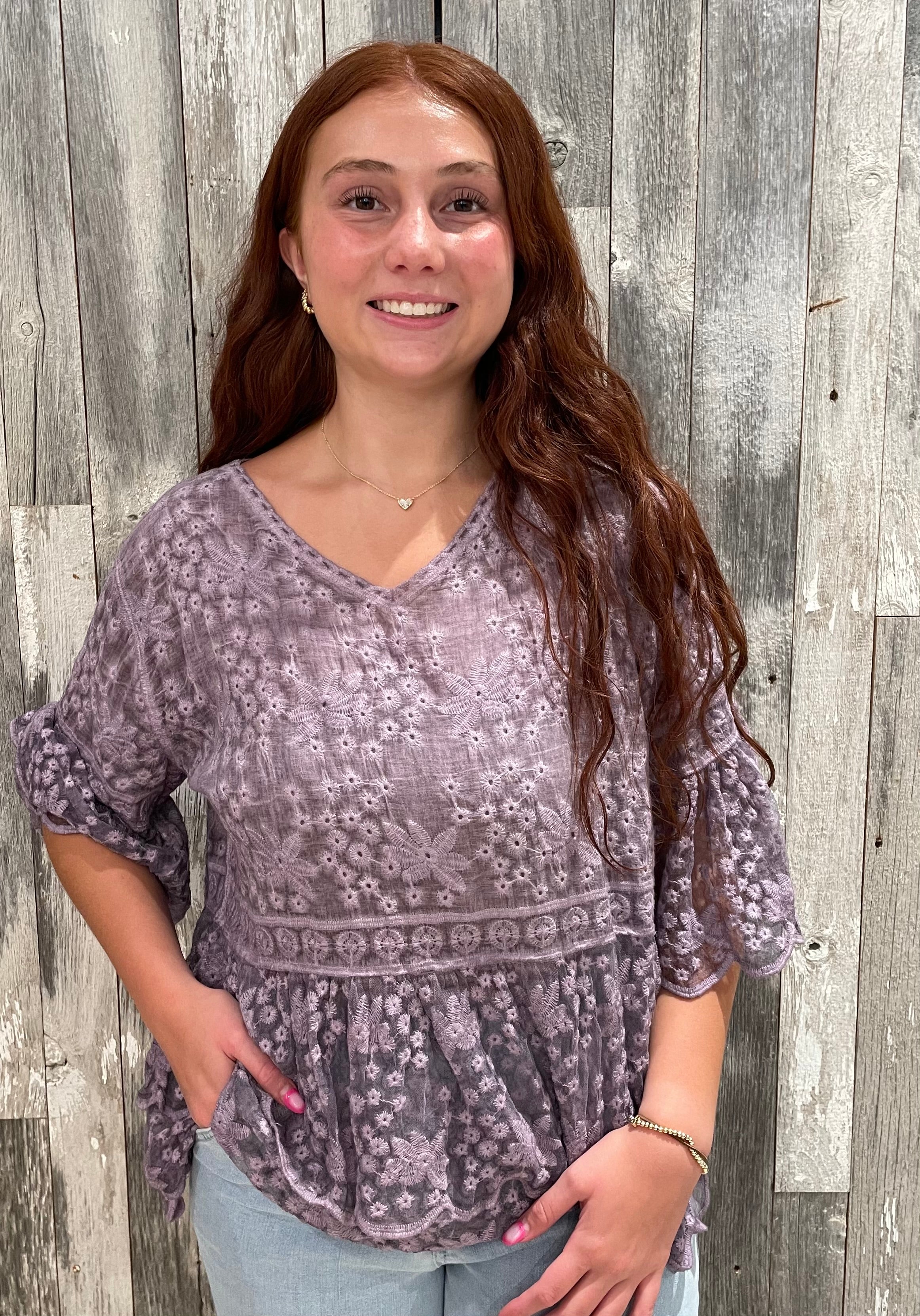 • Allover floral embroidery with a mix of eyelet and lace textures