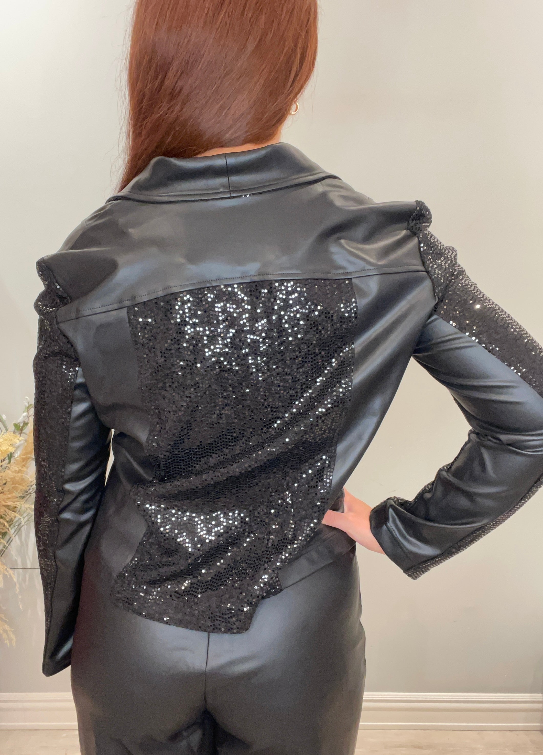 Black Shimmer + Liquid Leather Moto Zip Jacket W/ Pockets