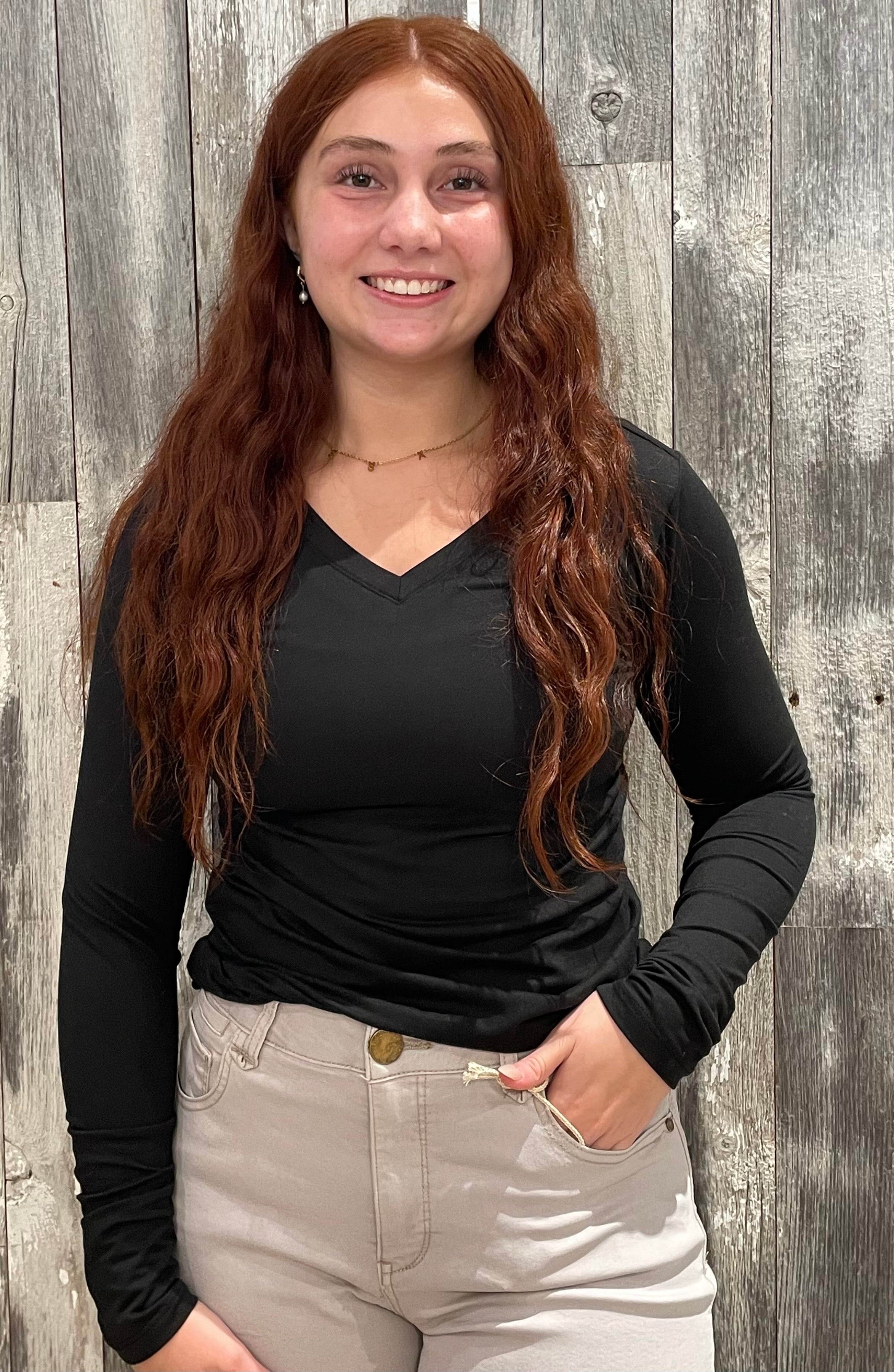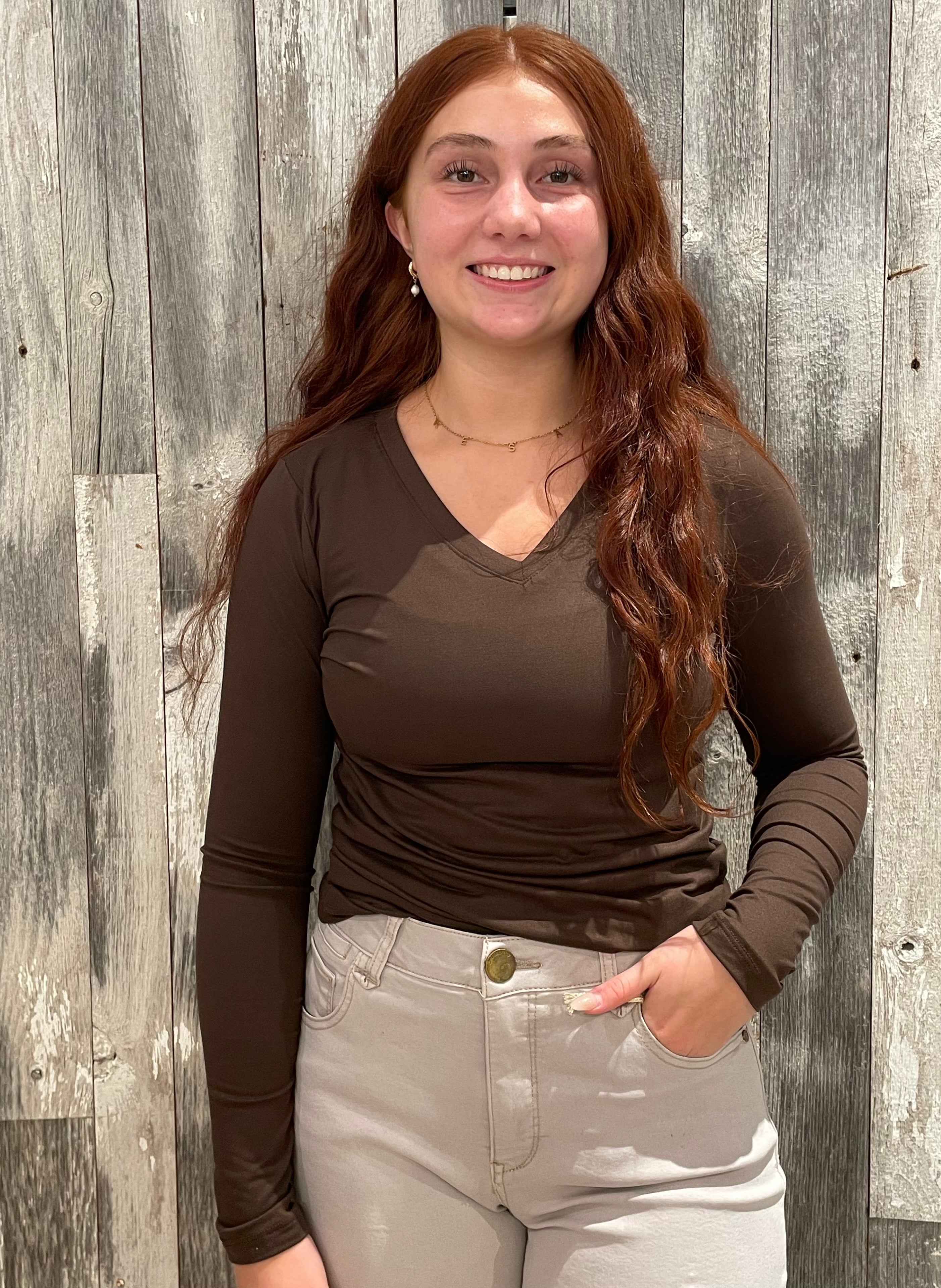 Brushed Microfiber Long Sleeve V-Neck Tee