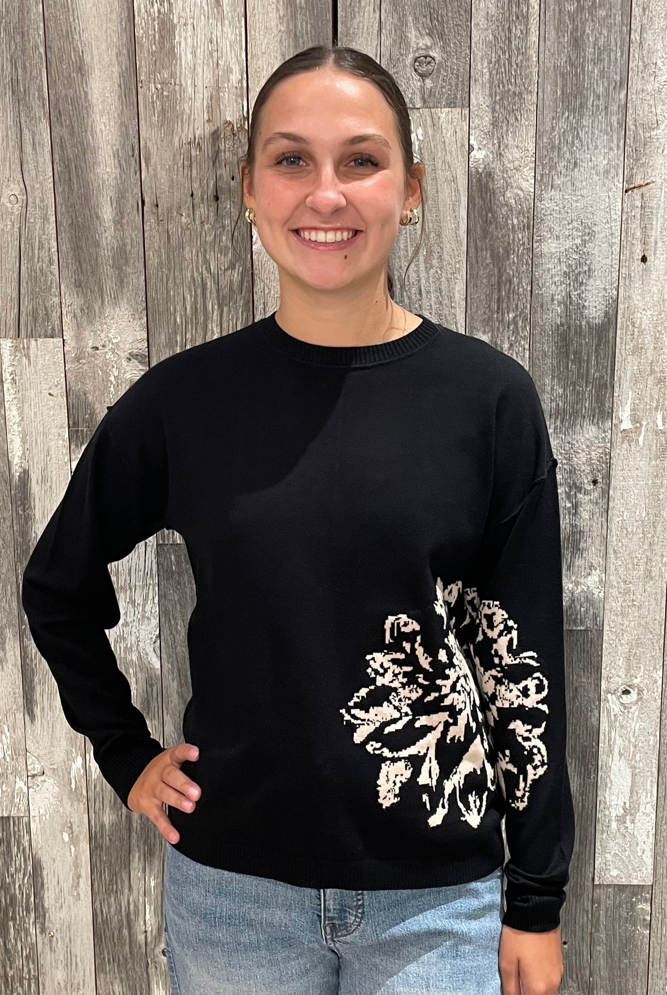 Charlie B Crew Neck Flower Print Sweater
