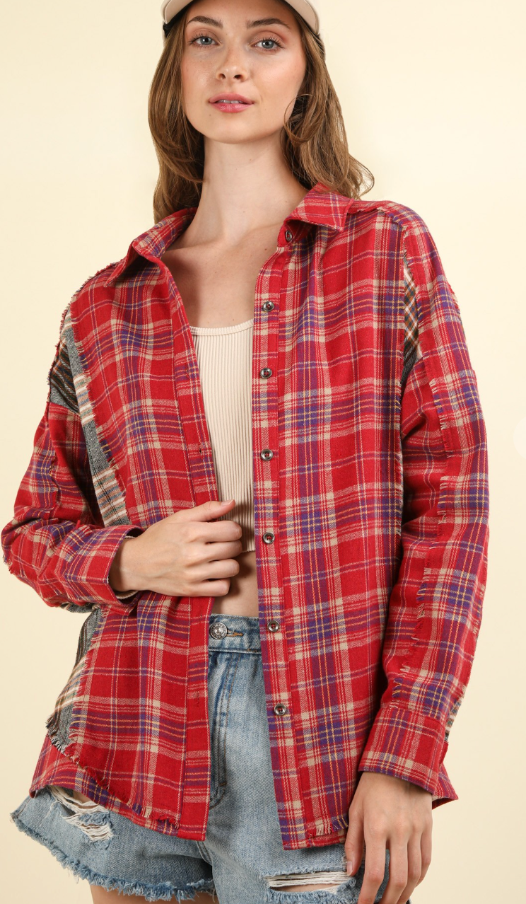 - Plaid Contrast Details: Subtle plaid accents on the cuffs, collar, or pocket add a stylish pop of color and texture to the classic button-up design.