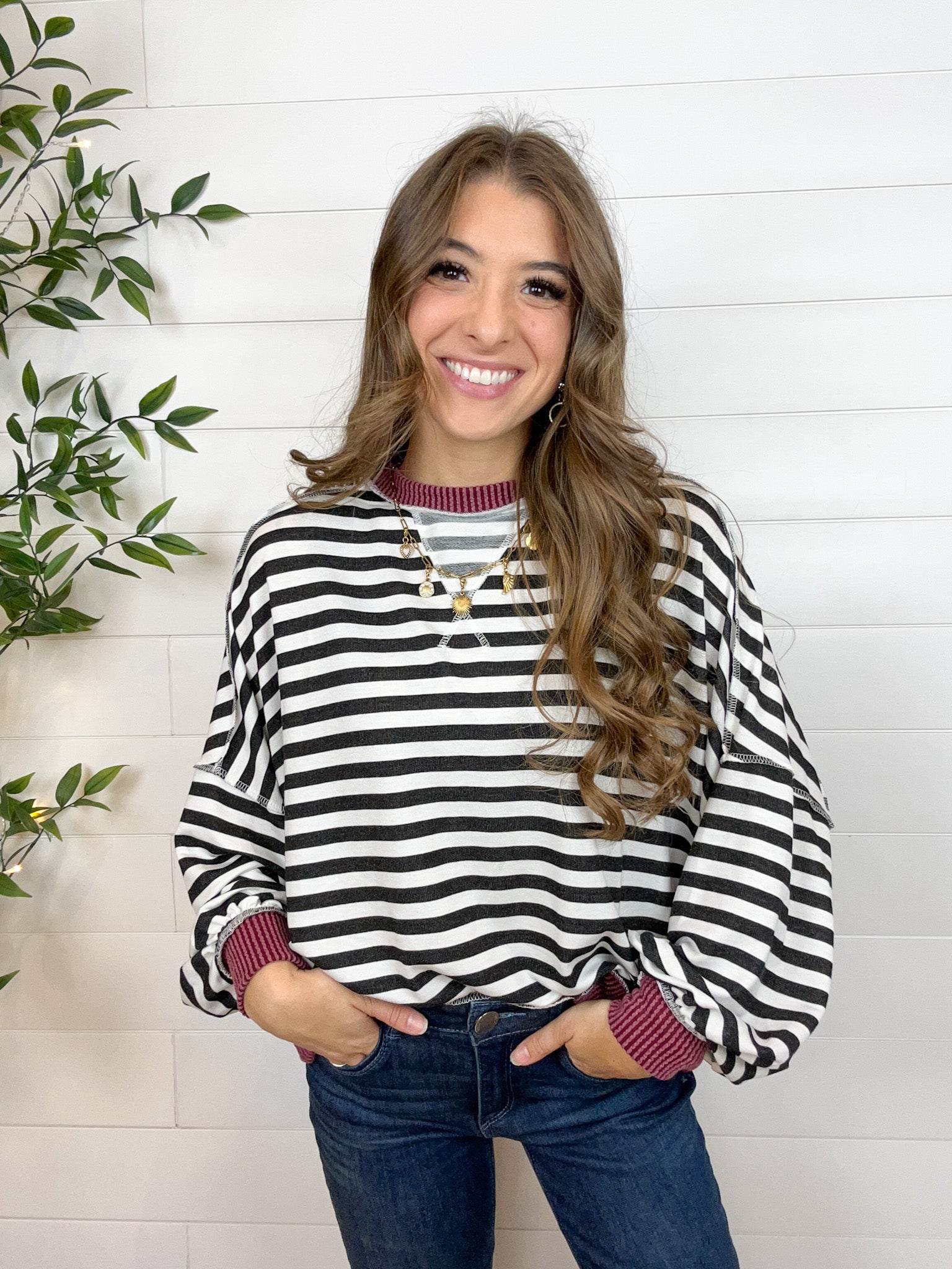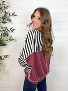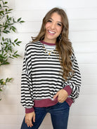 Crew Neck Loose Fit Stripe Pullover Knit Top