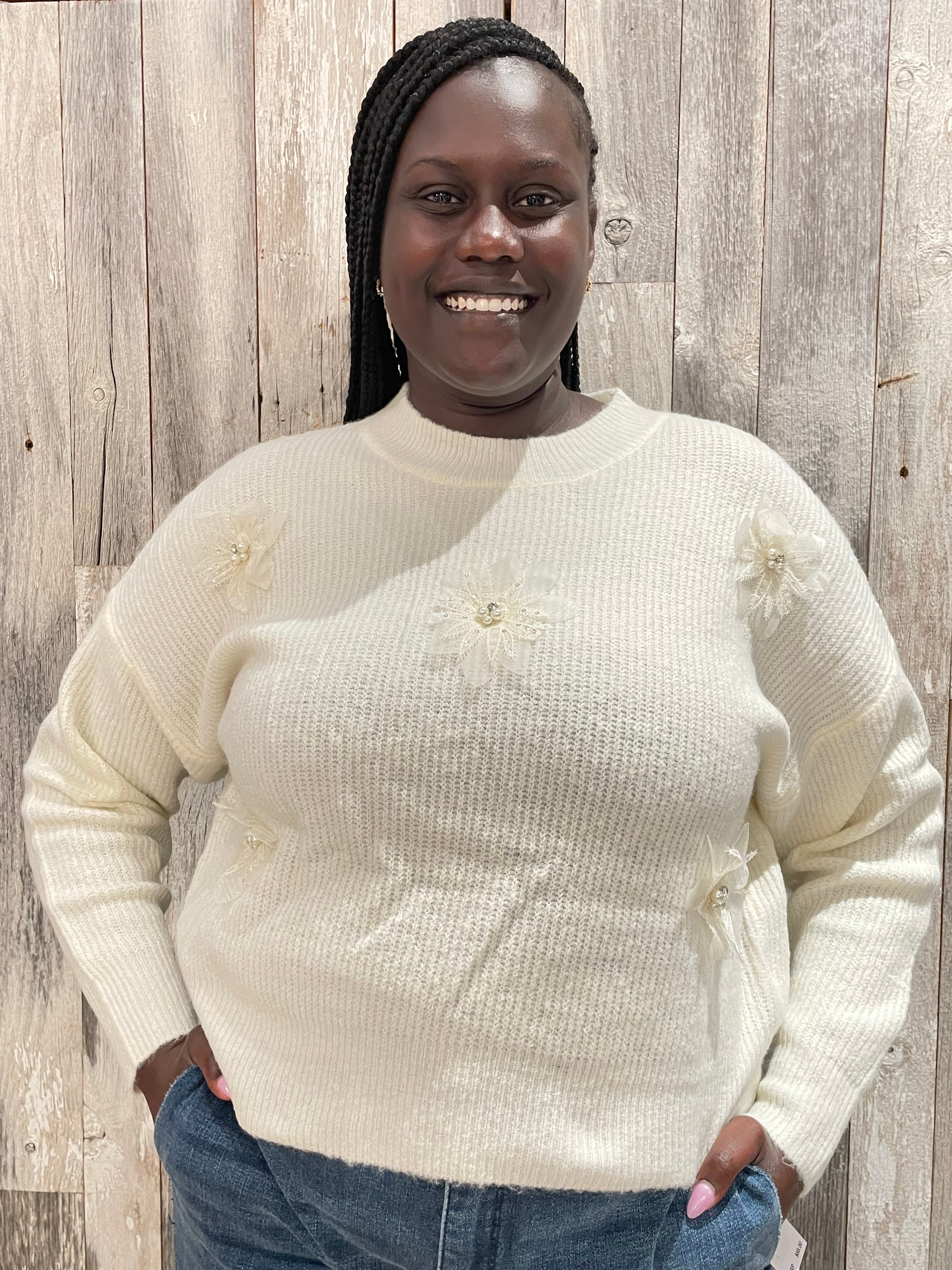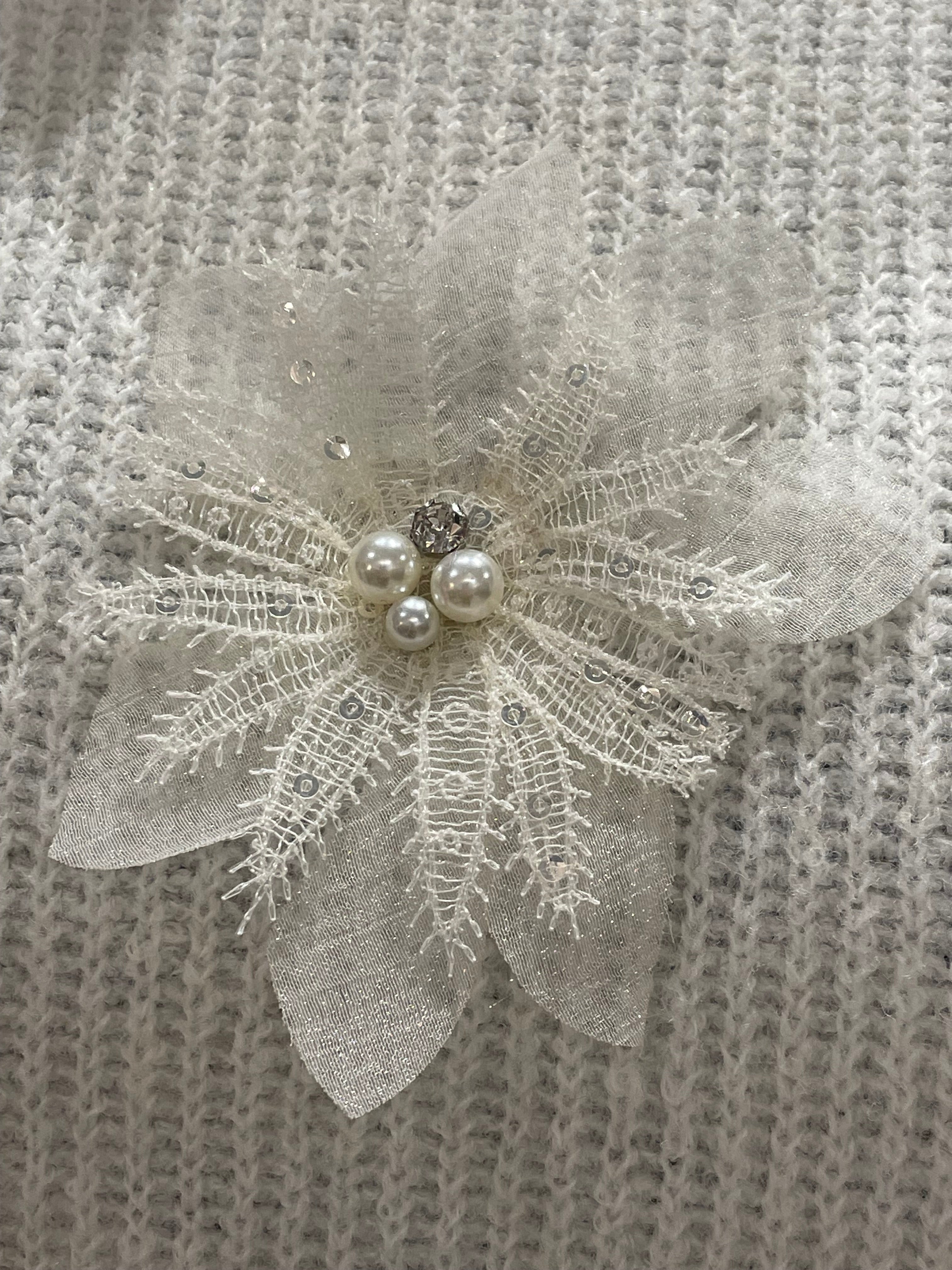 Details: Subtle floral knit accents on the front for a delicate, feminine touch