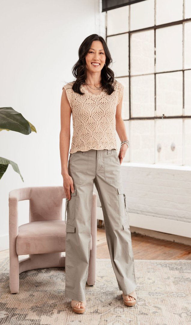 Pair it with cargo pants for a casual-chic vibe or a flowy skirt for a polished ensemble. This crochet top is a versatile addition to your wardrobe, ideal for both daytime outings and evening gatherings.