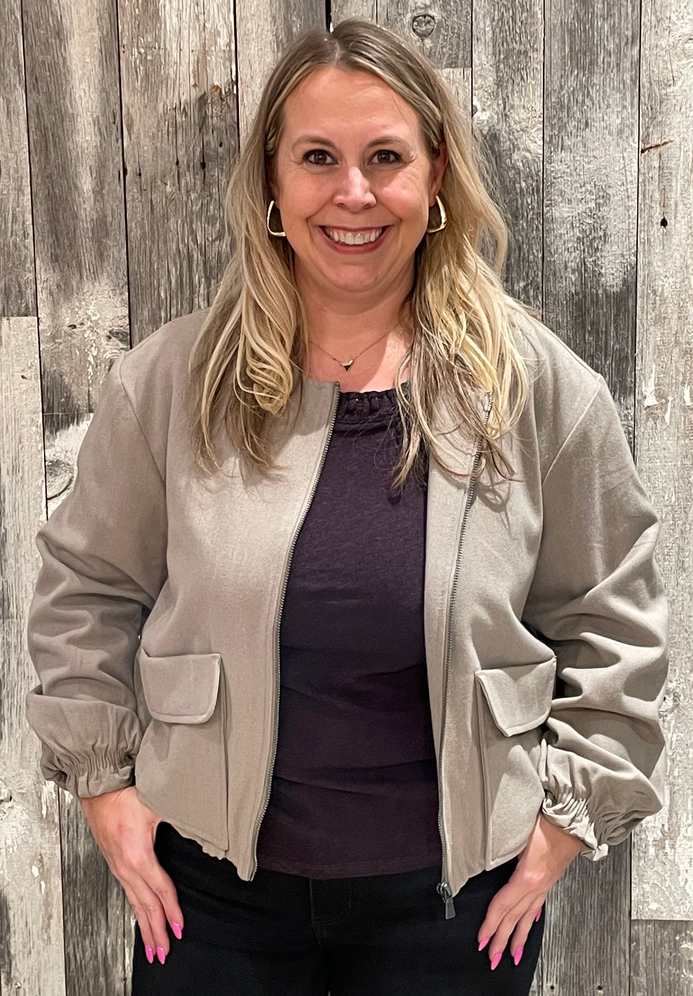 This Cropped Bomber Jacket brings a modern twist to a classic style with its cropped silhouette. Featuring a zip front closure and ribbed cuffs and hem, it offers a snug yet relaxed fit. Perfect for pairing with high-waisted jeans or skirts for a trendy, laid-back look.