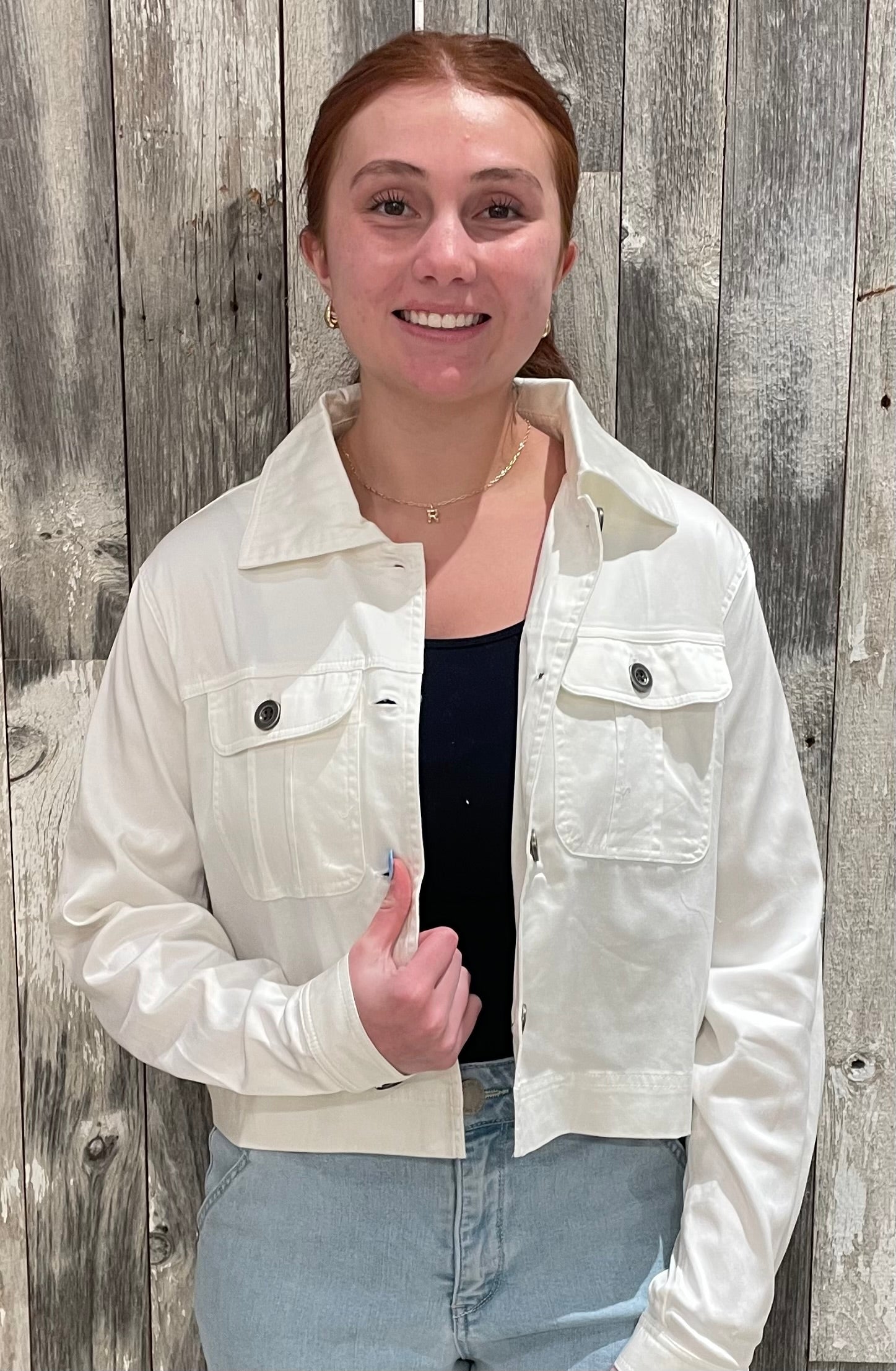 • Design: Features a collared neckline, button-down closure, and cropped length, providing a flattering silhouette.