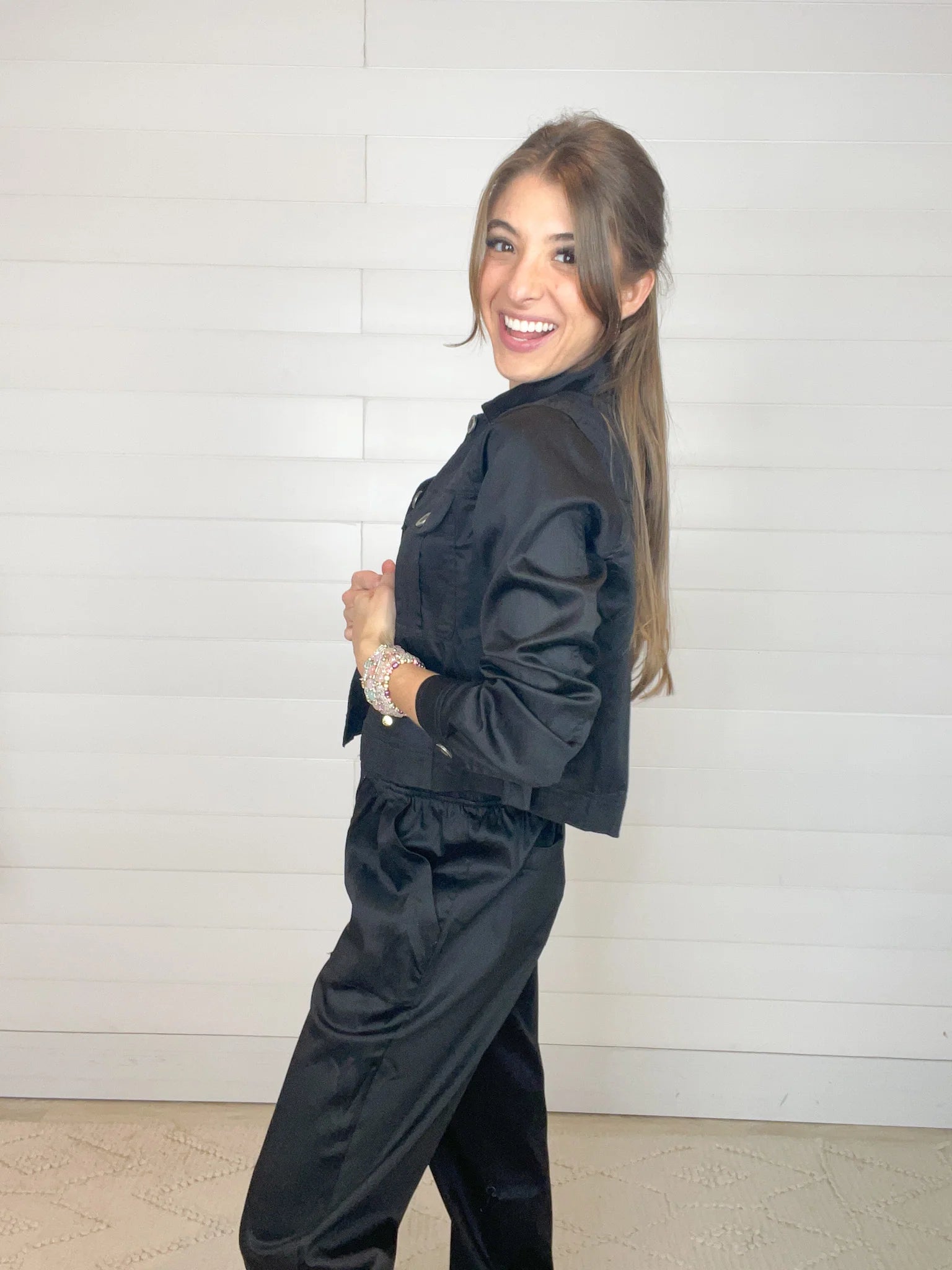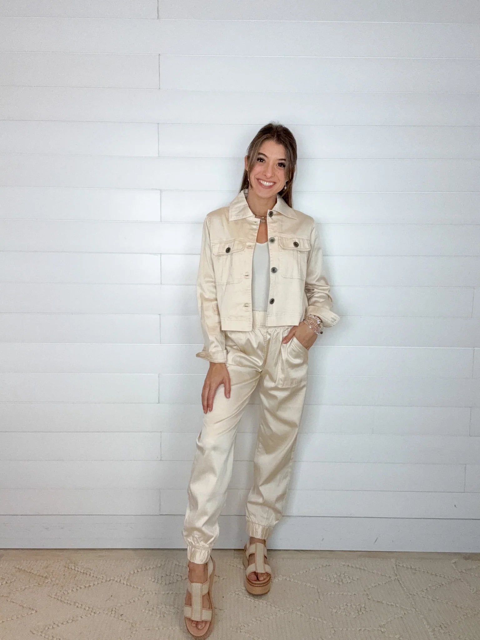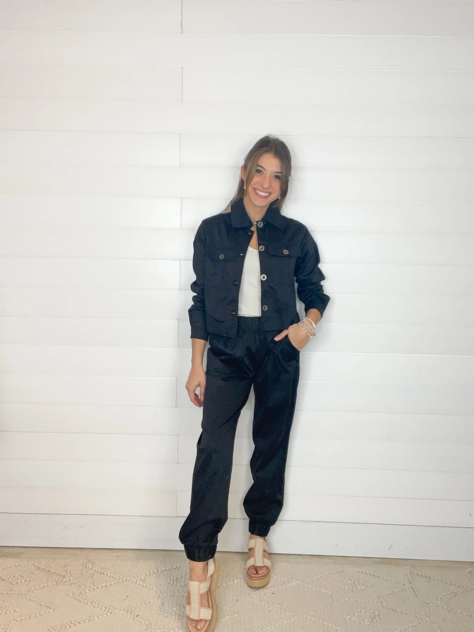 The Cropped Button-Down Jacket is a women's jacket that combines classic tailoring with contemporary design. This jacket features a cropped length and button-down front, offering a stylish and versatile addition to various outfits.