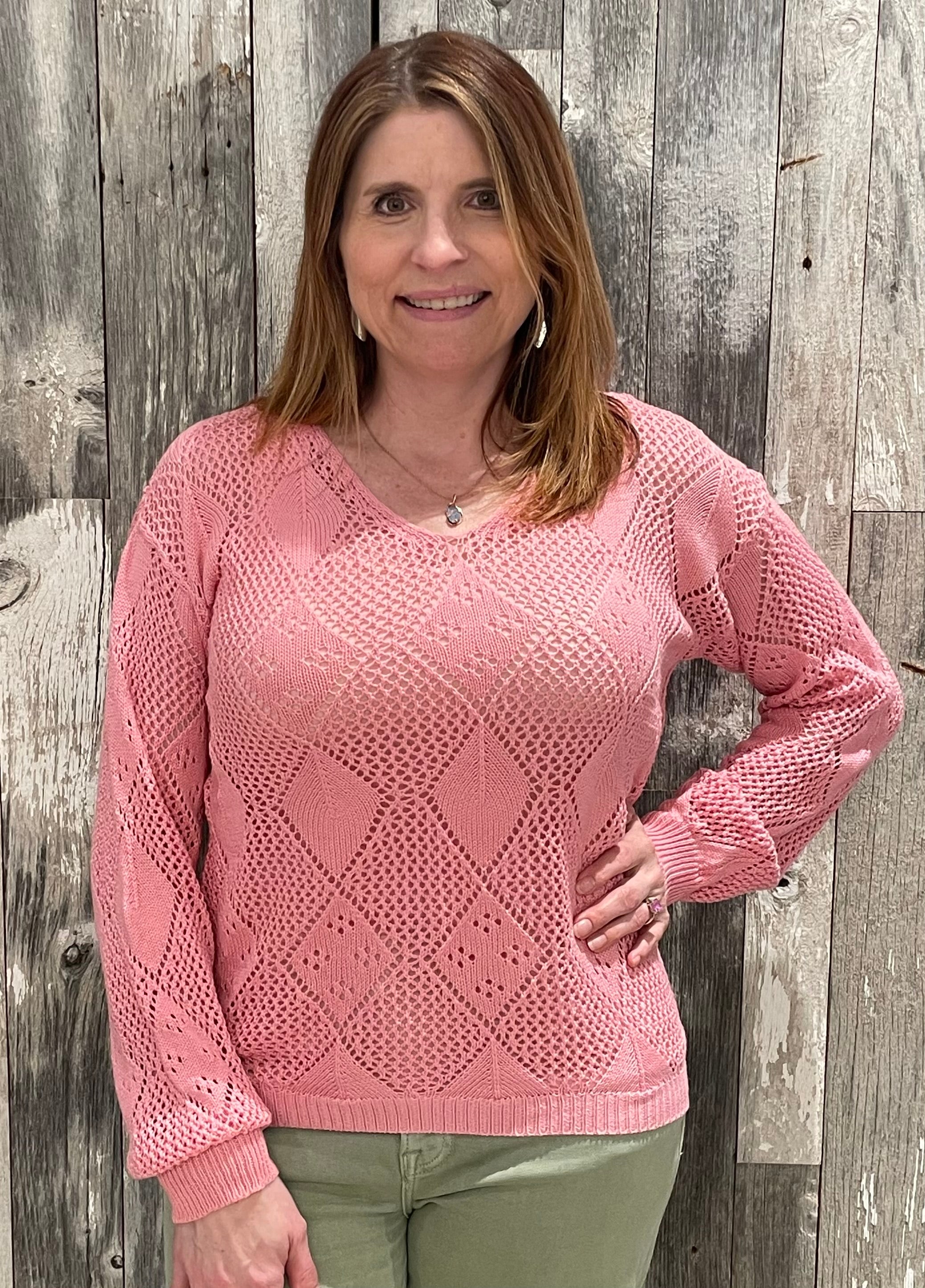 Pattern: Diamond-shaped design throughout, alternating between solid knit and open-knit (mesh-like) sections.