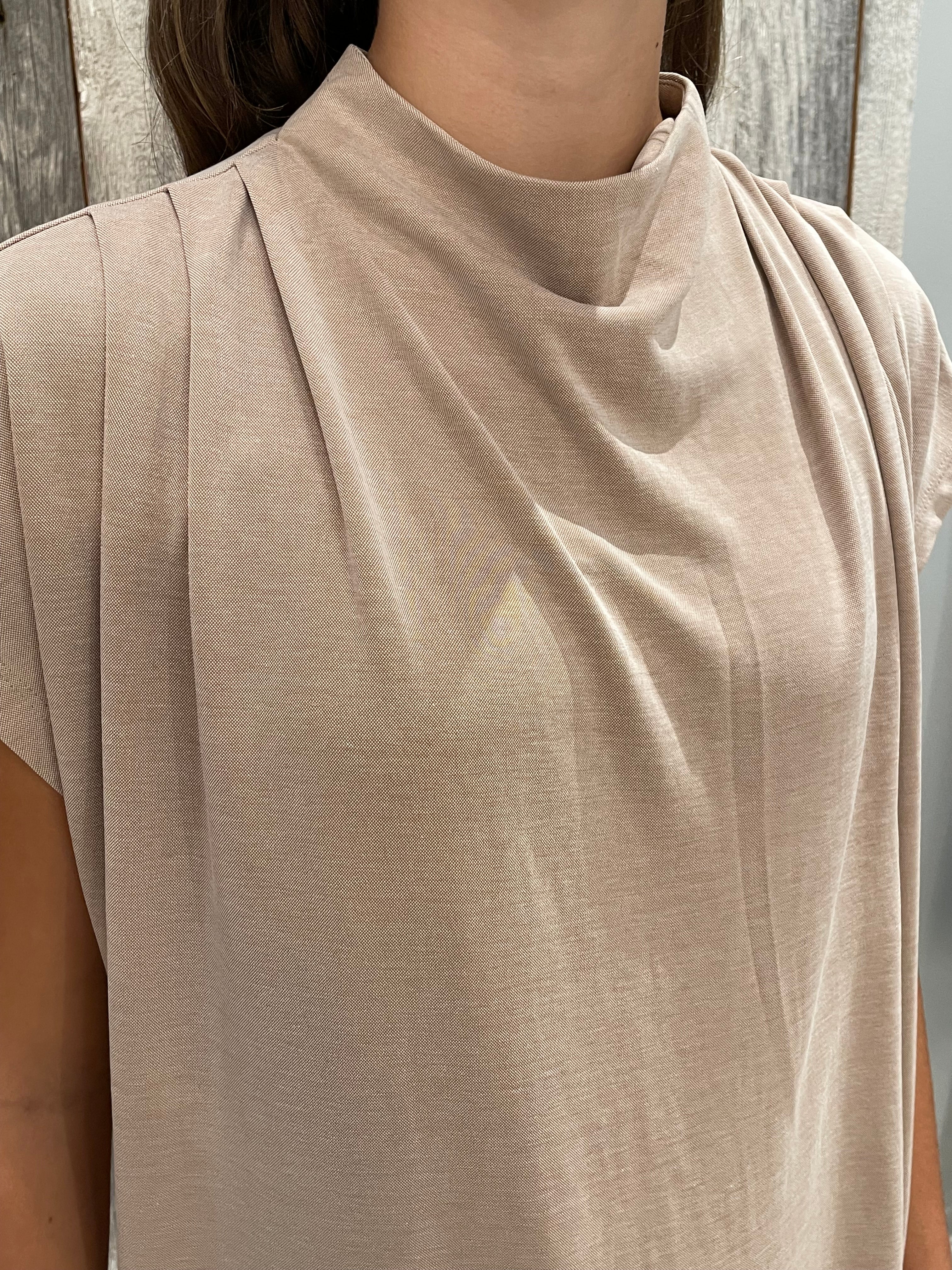 Draped Shoulder Dolman Cupro Top