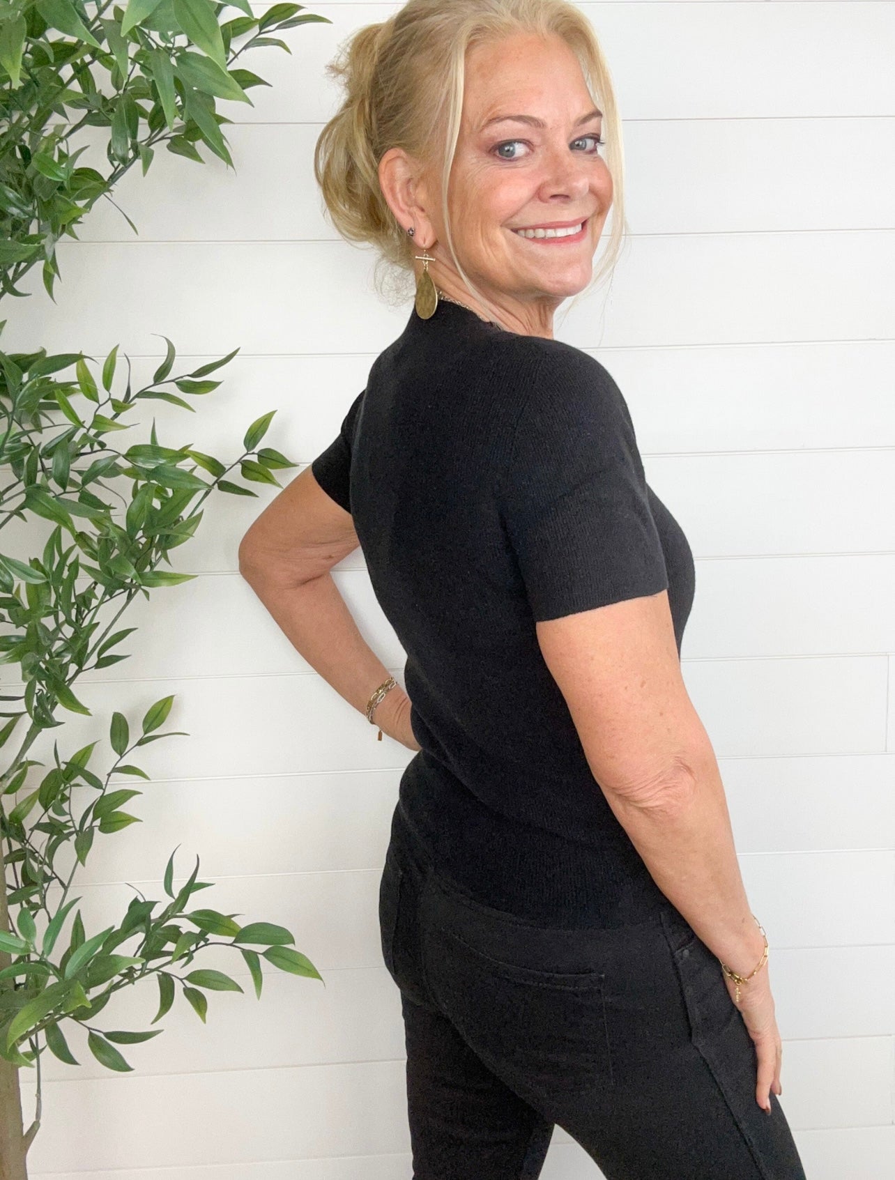 A closet essential with a cozy twist—this short sleeve mock neck sweater is perfectly fitted for layering under jackets or wearing on its own. Soft, warm, and versatile, it’s the go-to piece for effortless everyday style.