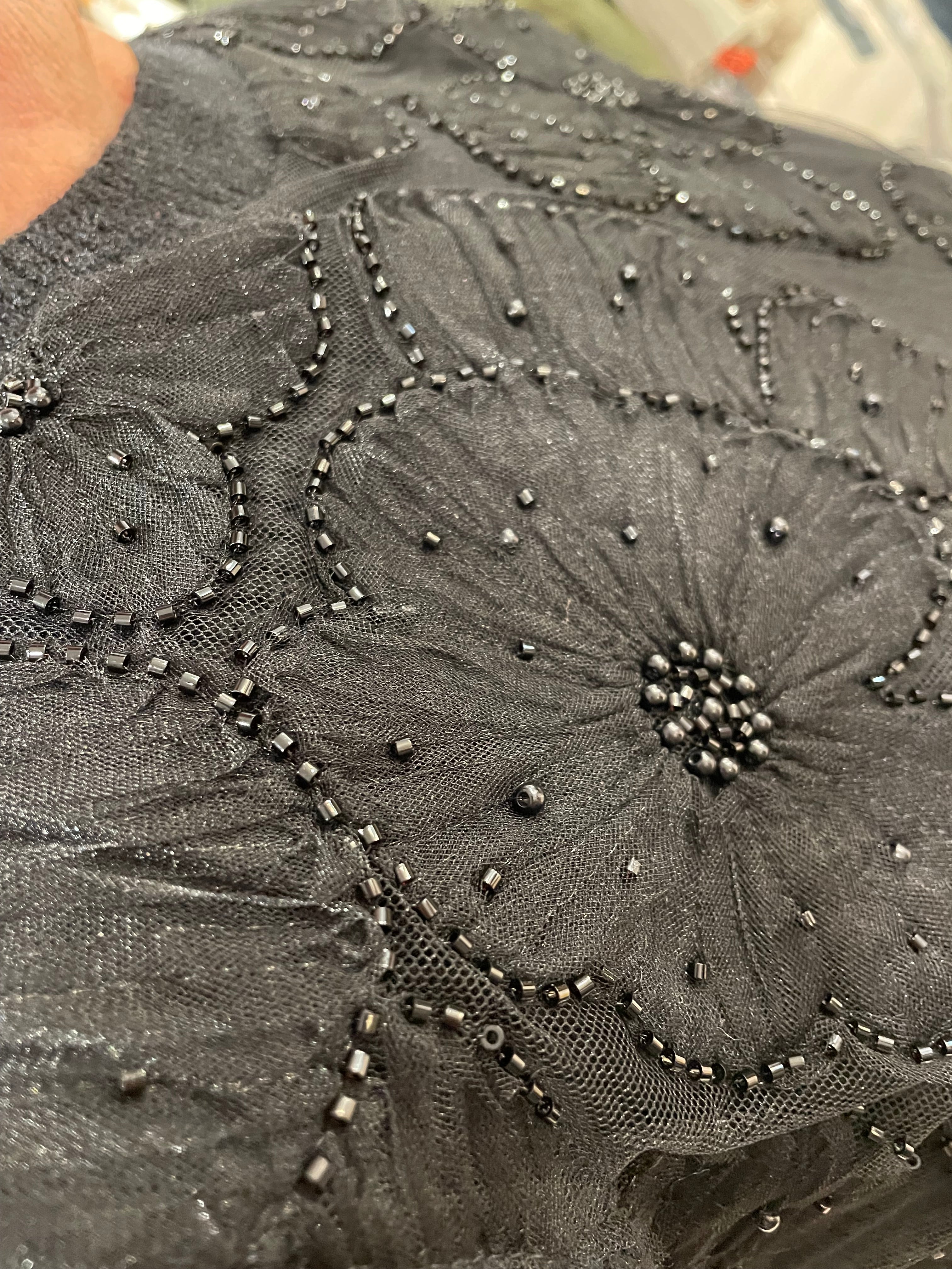 Each flower accented with delicate beading for subtle shimmer