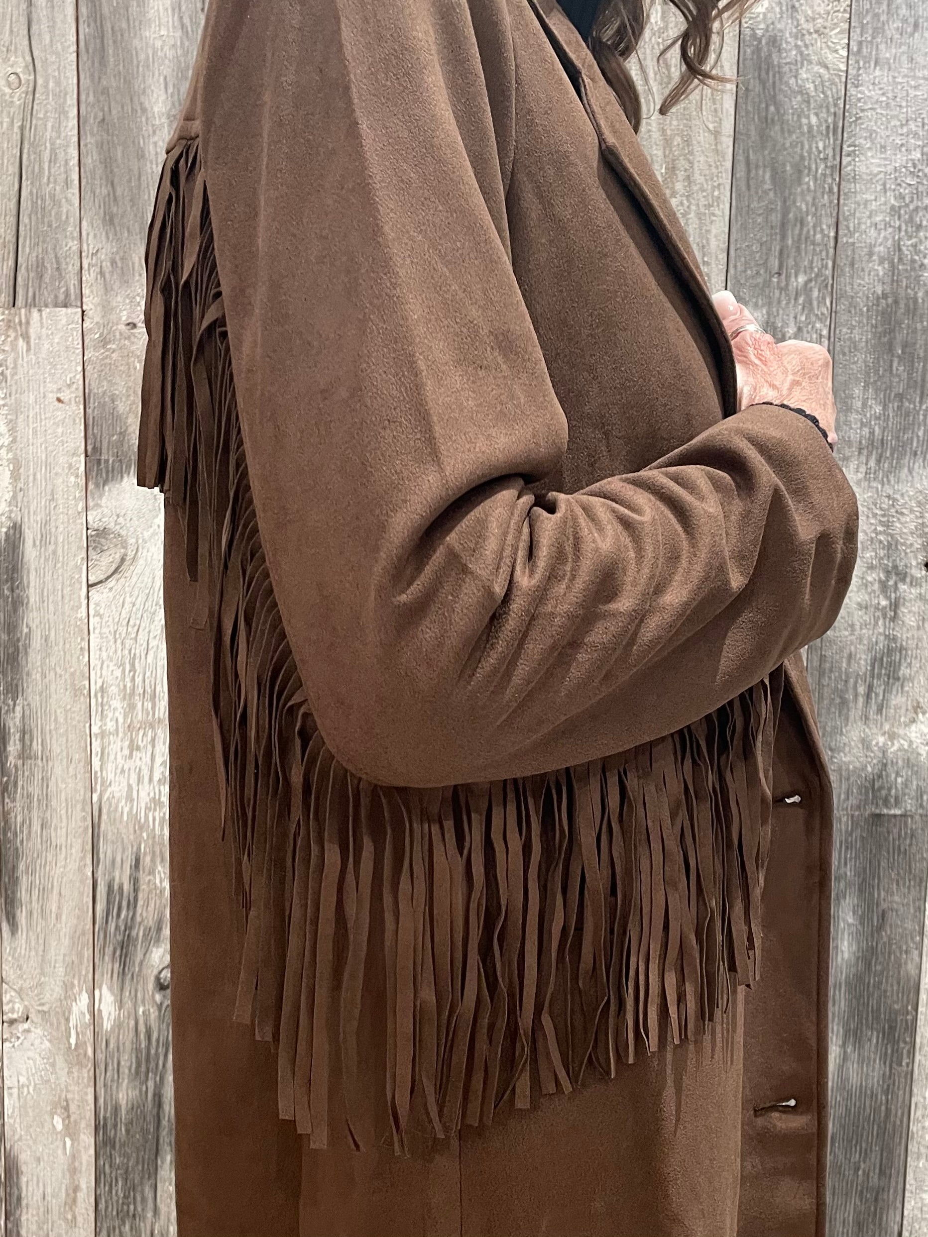Fringe Trim Faux Suede Coat