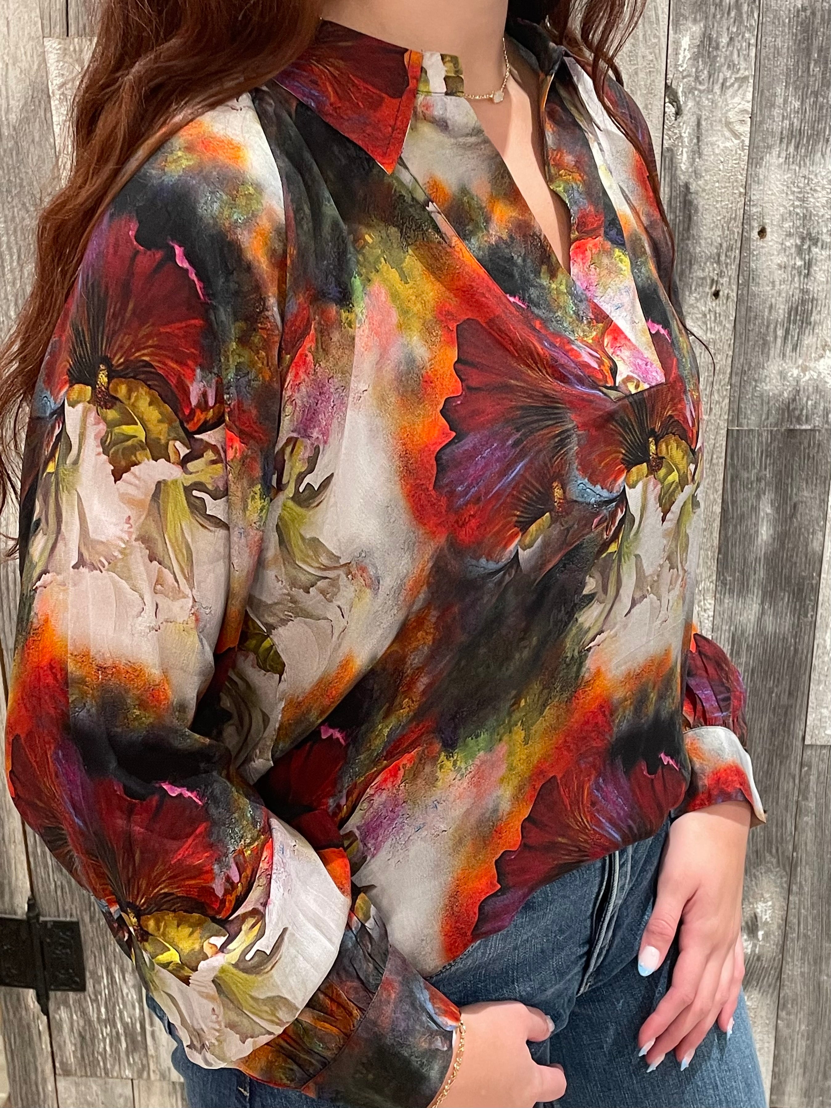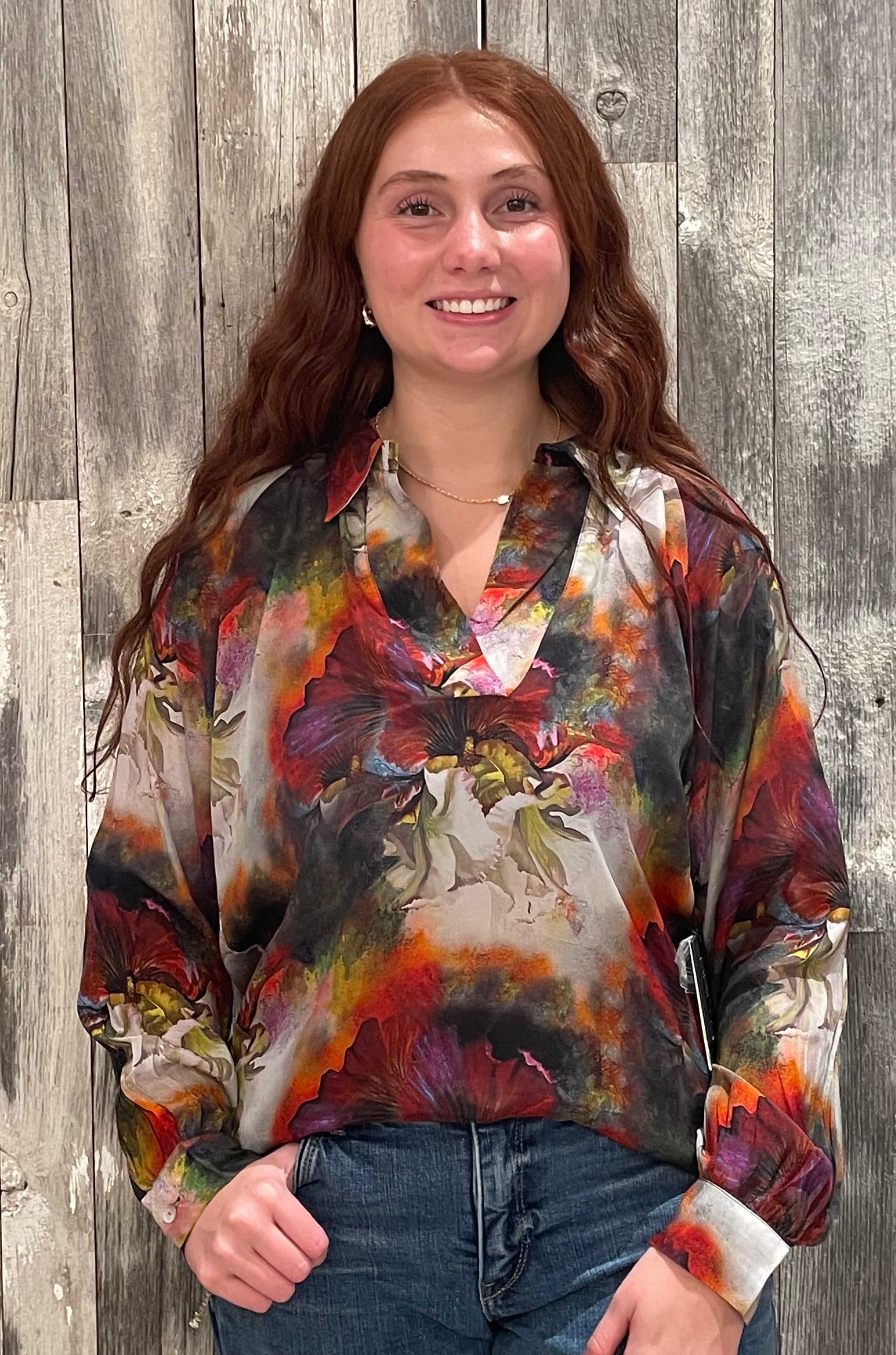 Style: Loose-fitting blouse with a relaxed silhouette.