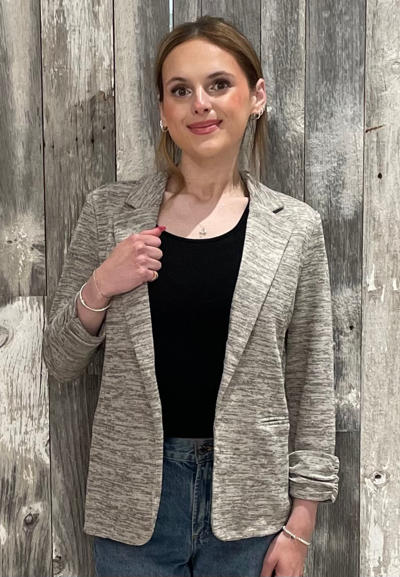 Heathered Knit Shirred Sleeve Blazer