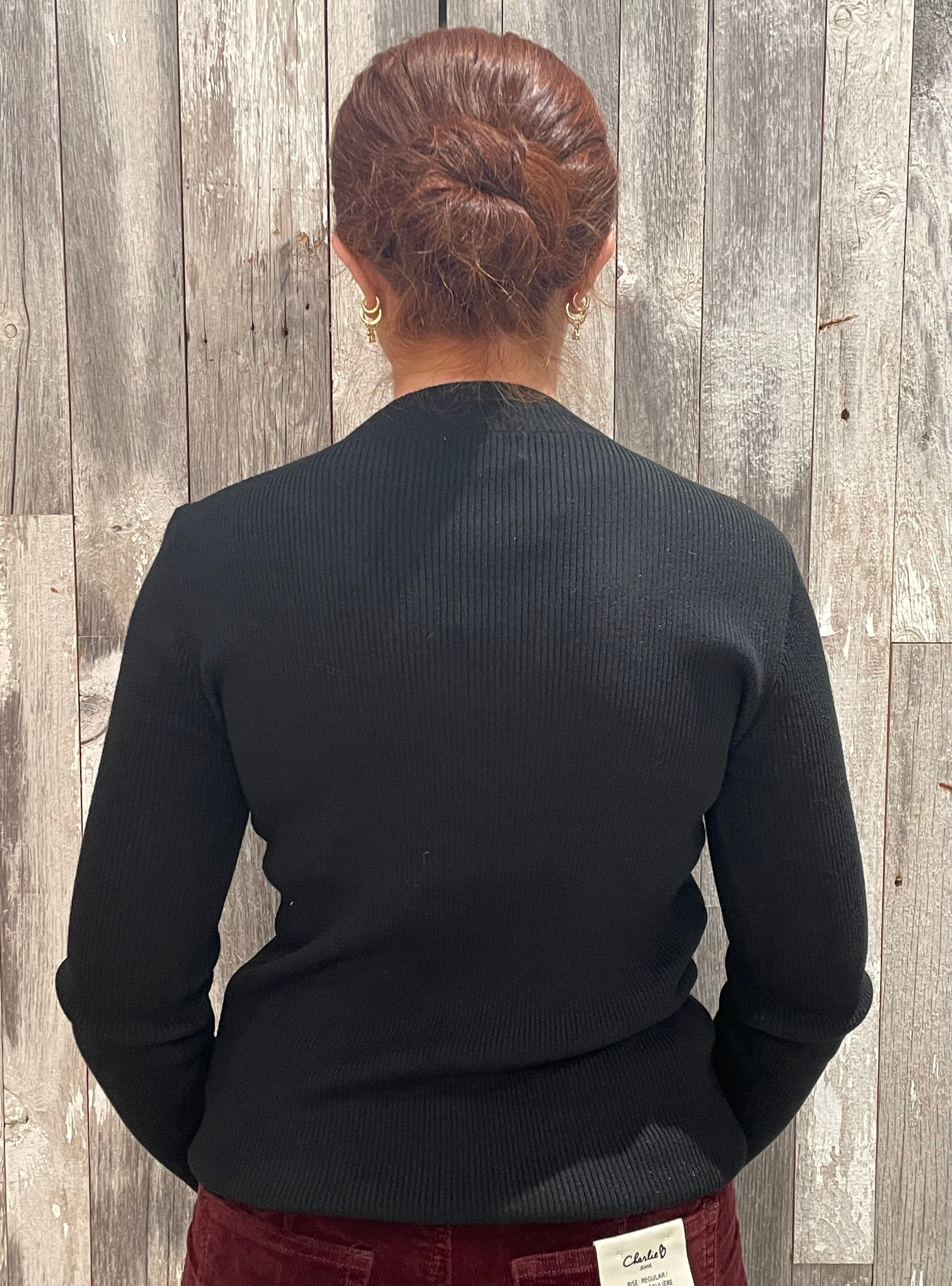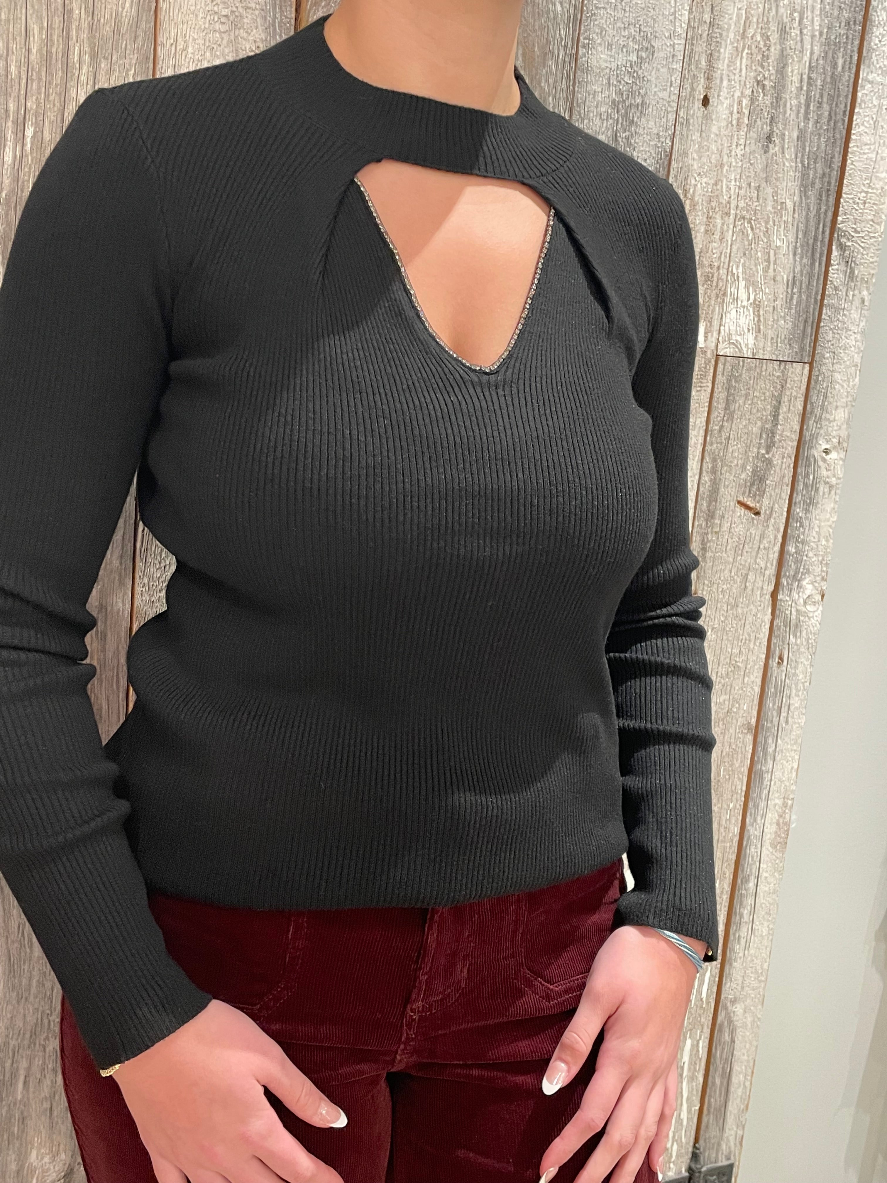 Subtle rhinestone trim around the V-neckline adds sparkle