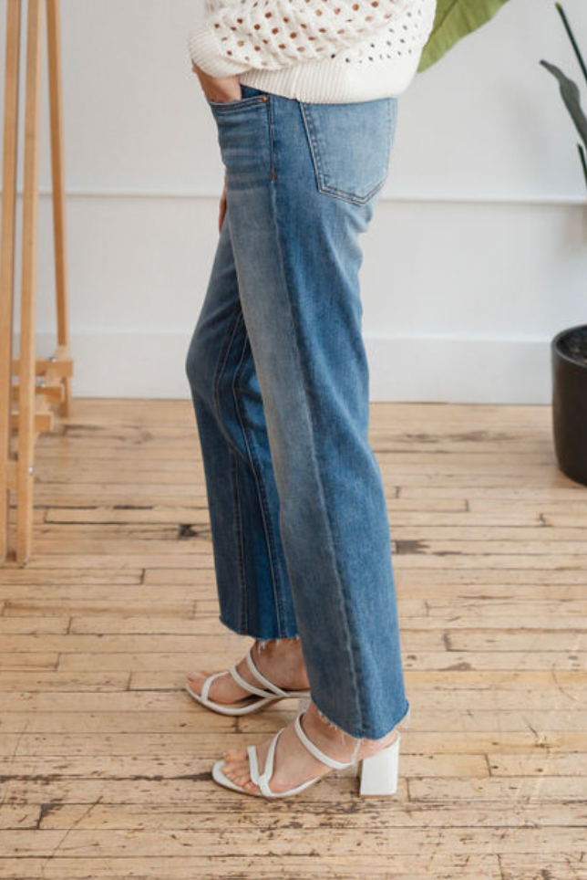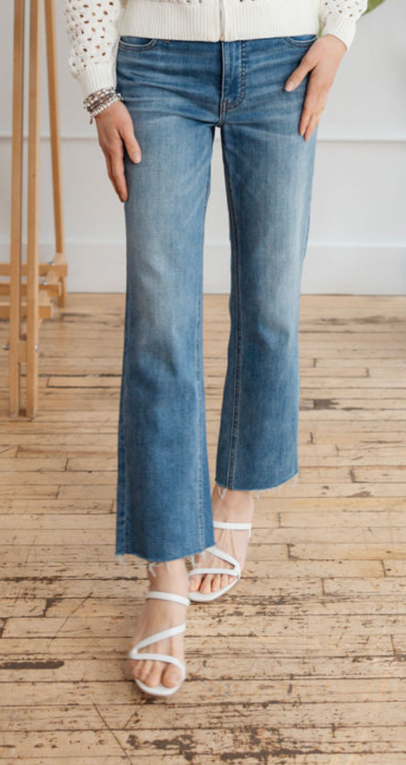 The Kelsey High Rise Fab AB Ankle Flare is a stylish and versatile denim piece that flatters any outfit.