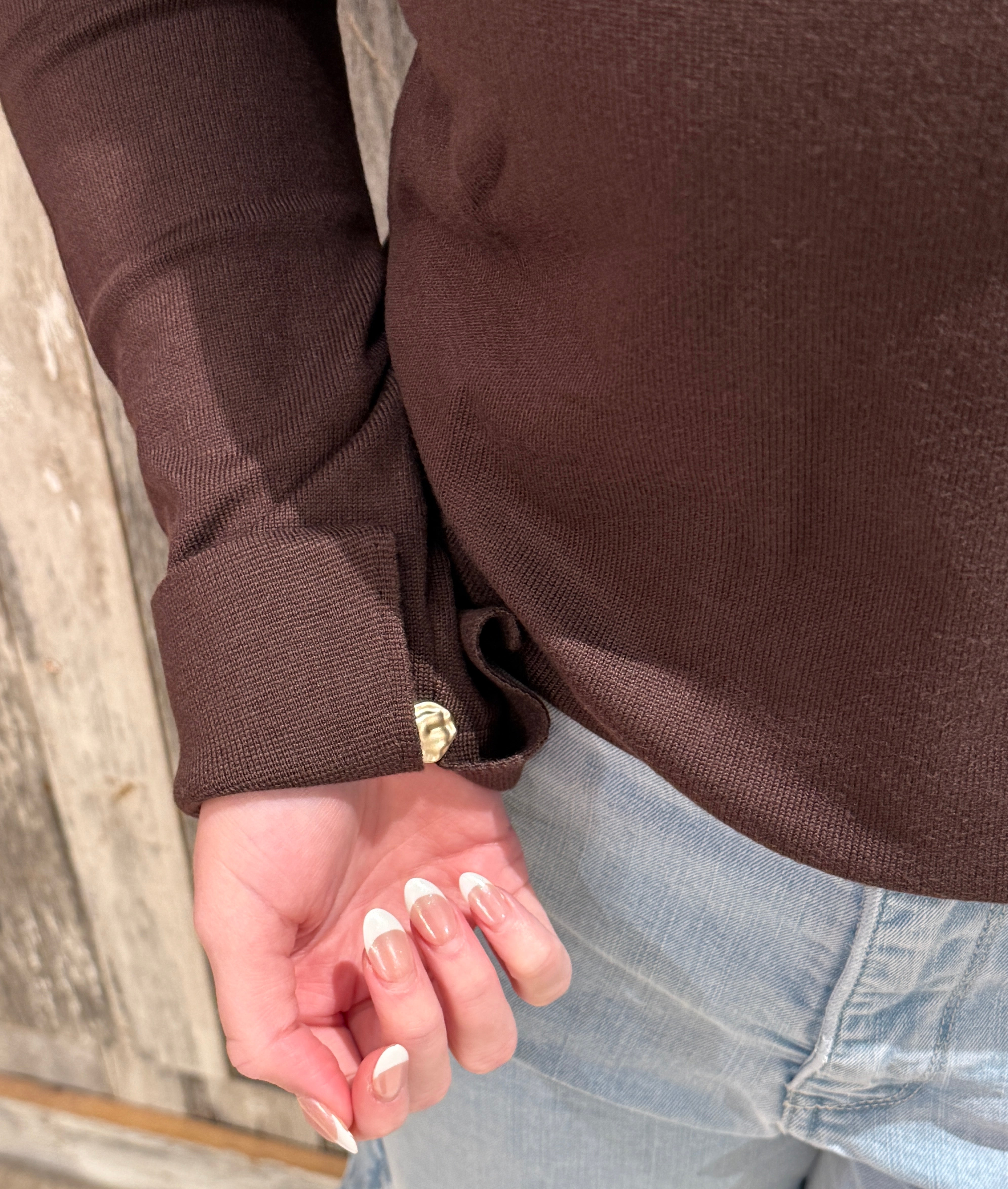Elevate your everyday layering with this soft-knit, long sleeve top. The split polo-style collar adds a touch of refinement, while the fitted silhouette hugs just right for a flattering, sleek look. Perfect for pairing with skirts, trousers, or your favorite jeans for effortless style.