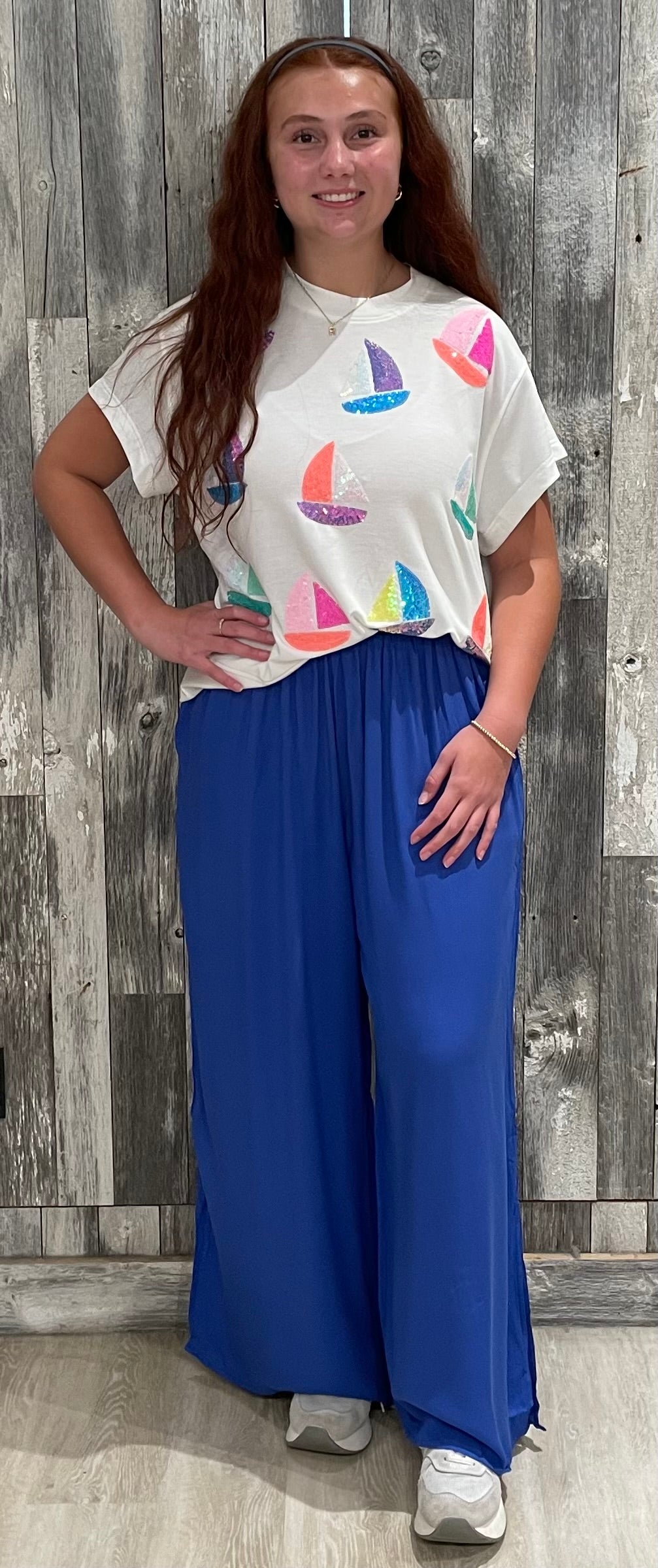 Flowy wide-leg pants in a striking cobalt blue shade