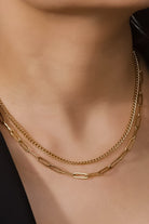 Mixed Chain Styles: Combines a delicate curb chain with a bold paperclip chain for modern contrast.