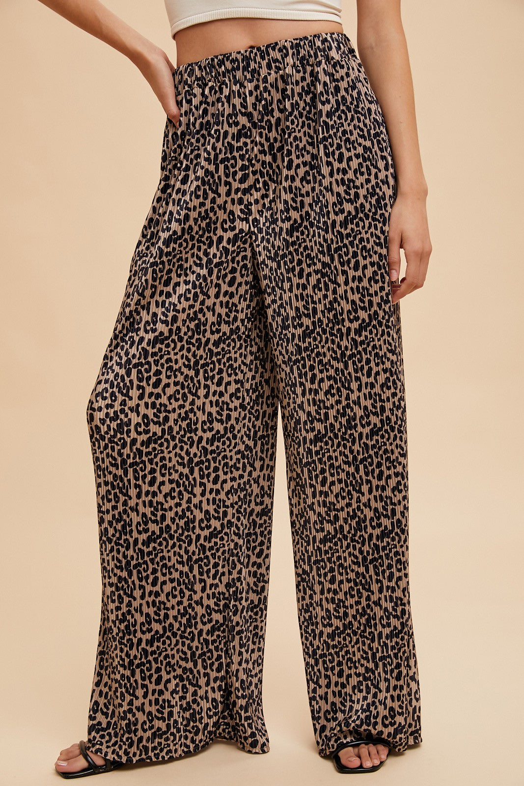 Leopard Plisse Wide Leg Pant