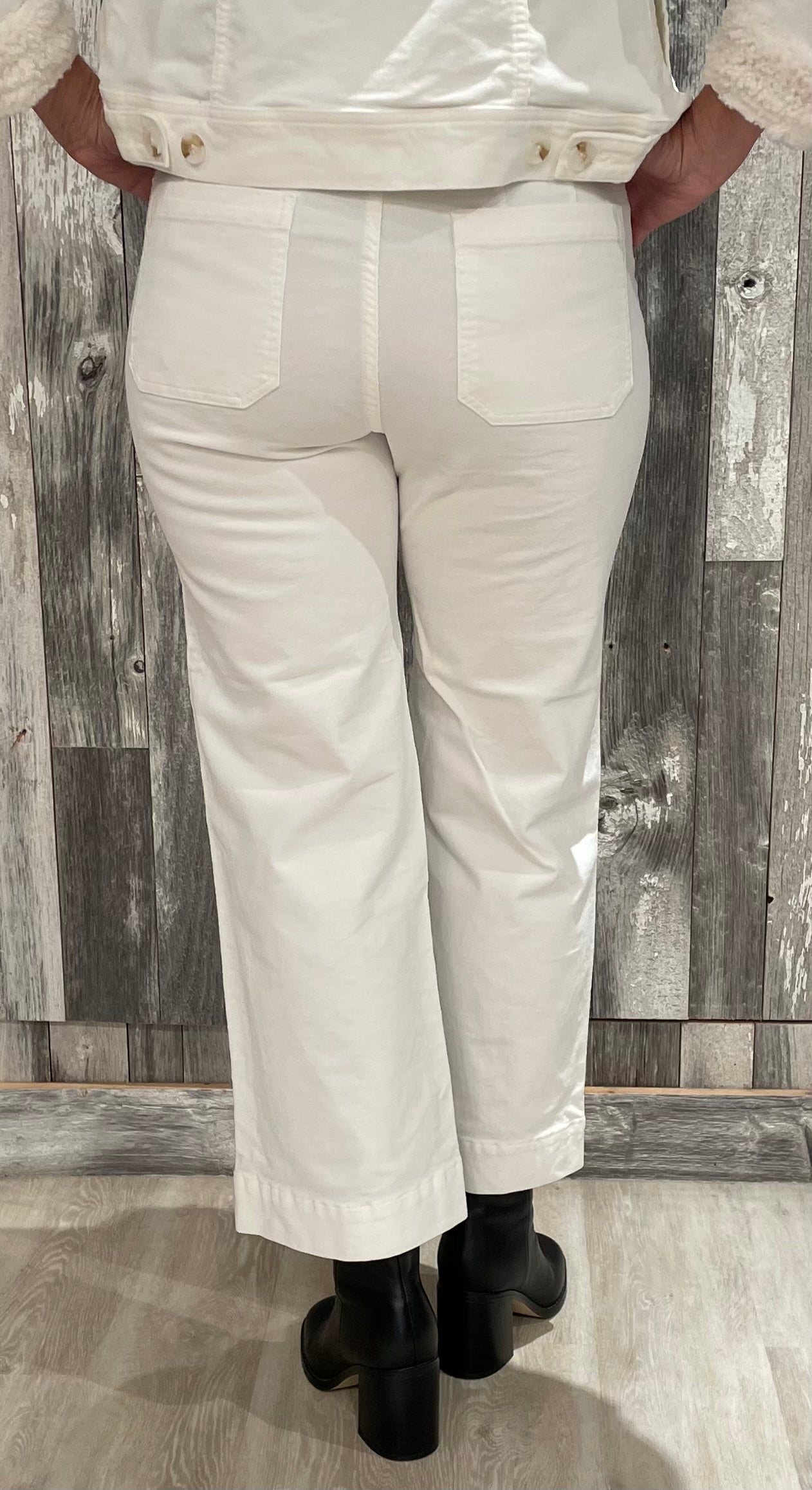 Straight to slight kick-crop leg; ankle length