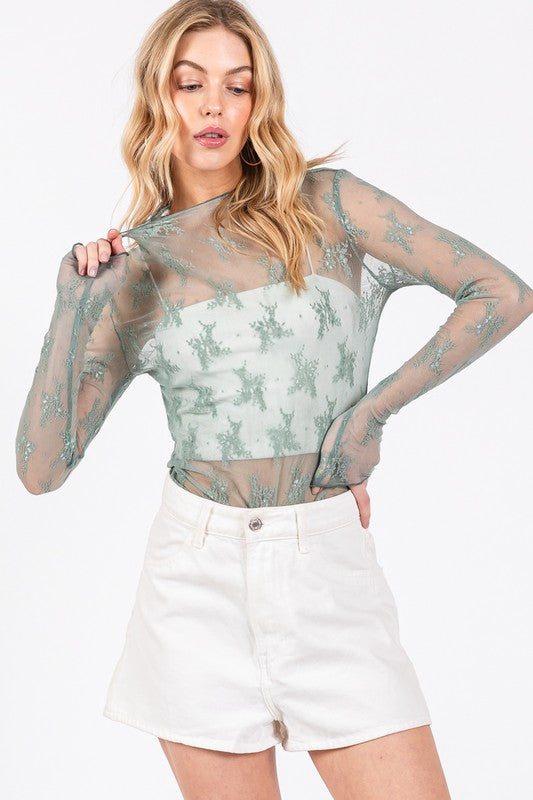 Elevate your style with this Long Sleeve Floral Lace Top, perfect for a variety of occasions. Crafted from a stretchable blend of nylon and spandex, this top offers comfort and flexibility. The intricate floral lace design adds a touch of elegance, making it a versatile piece that transitions seamlessly from casual daywear to sophisticated evening attire. Pair it with jeans for a chic look or dress it up with a skirt for a refined ensemble.