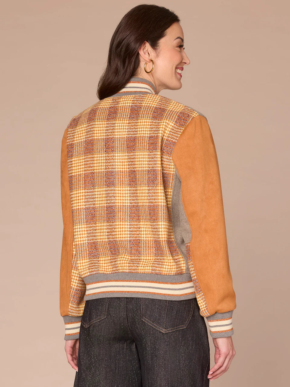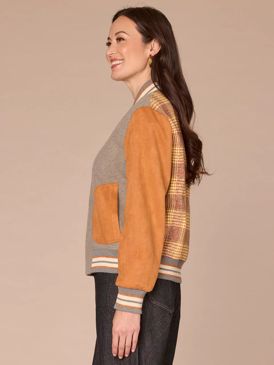 This mixed media woven jacket adds color, personality, and a preppy twist to your ensembles. It’s designed with long banded sleeves, a stand collar, zip front, rounded patch pockets, and color block details.