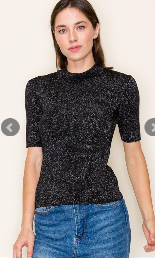 Lurex Yarn Mock Neck Pullover Sweater