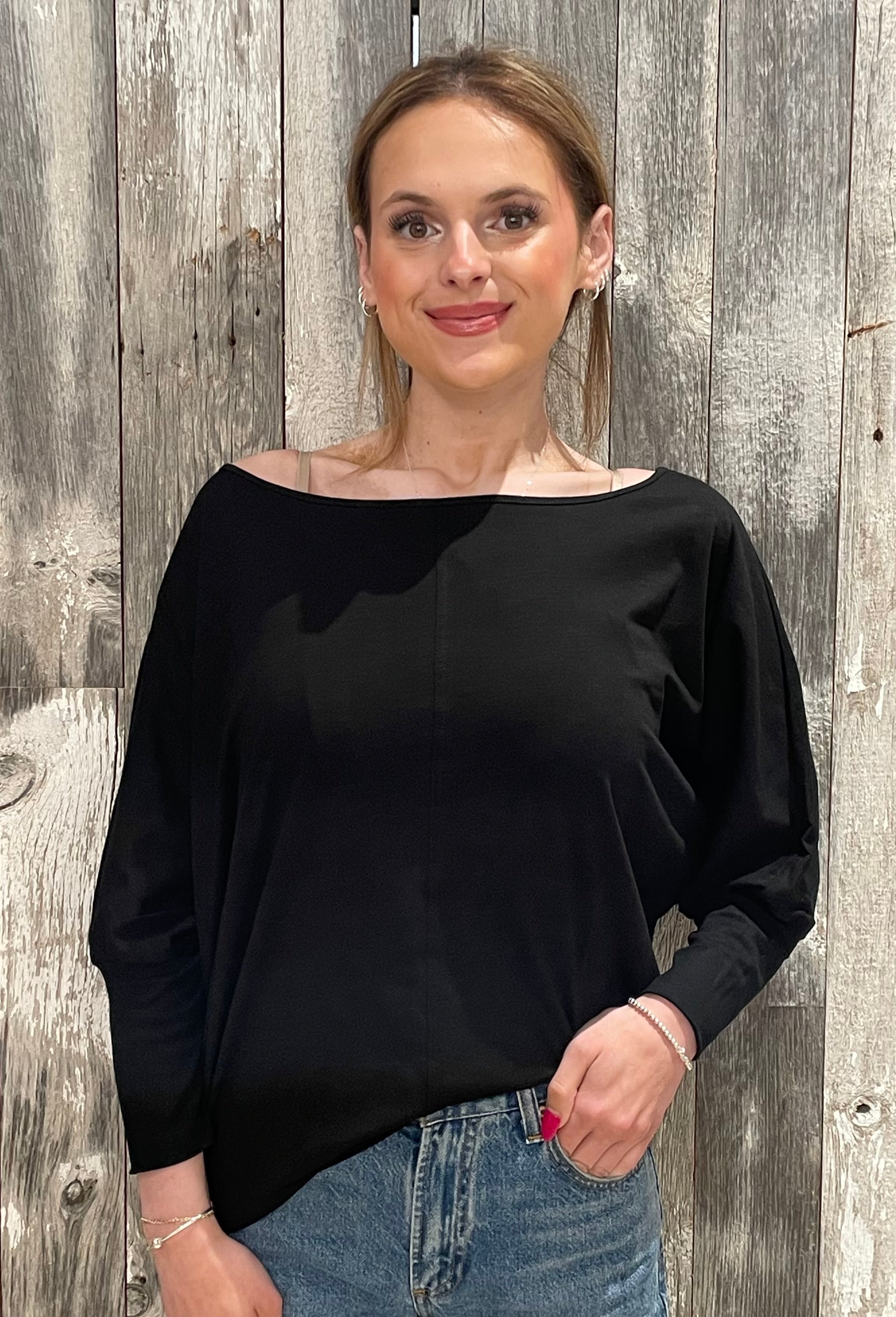 Mac and Me Dolman Sleeve Top combines effortless style with a comfortable, draped silhouette.