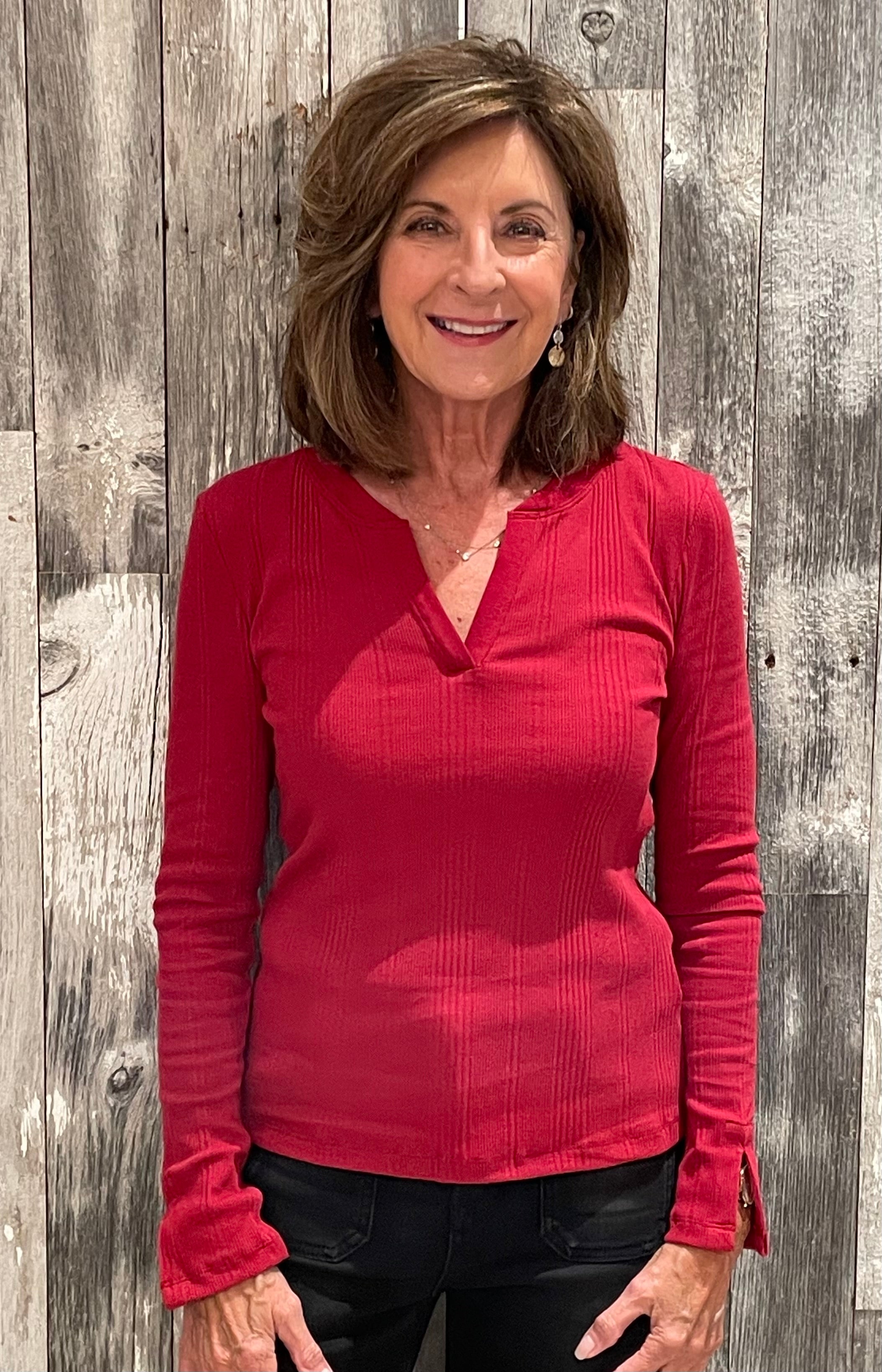 - Design: The Mac and Me Variegated Rib Top is designed with a distinctive ribbed texture that adds depth and dimension to your look. The ribbing pattern creates a flattering silhouette, while the crew neckline and long sleeves offer a timeless, polished appearance.