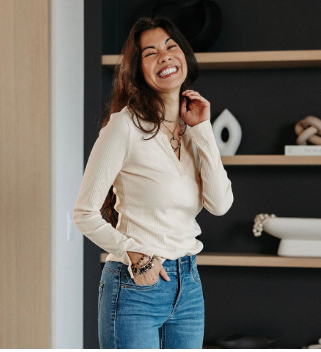 - Versatility: Whether you're dressing it up for a night out or keeping it casual for a day at the office, the Mac and Me Variegated Rib Top transitions effortlessly between looks. Pair it with tailored trousers for a chic ensemble or style it with your favorite denim for a more relaxed vibe.
