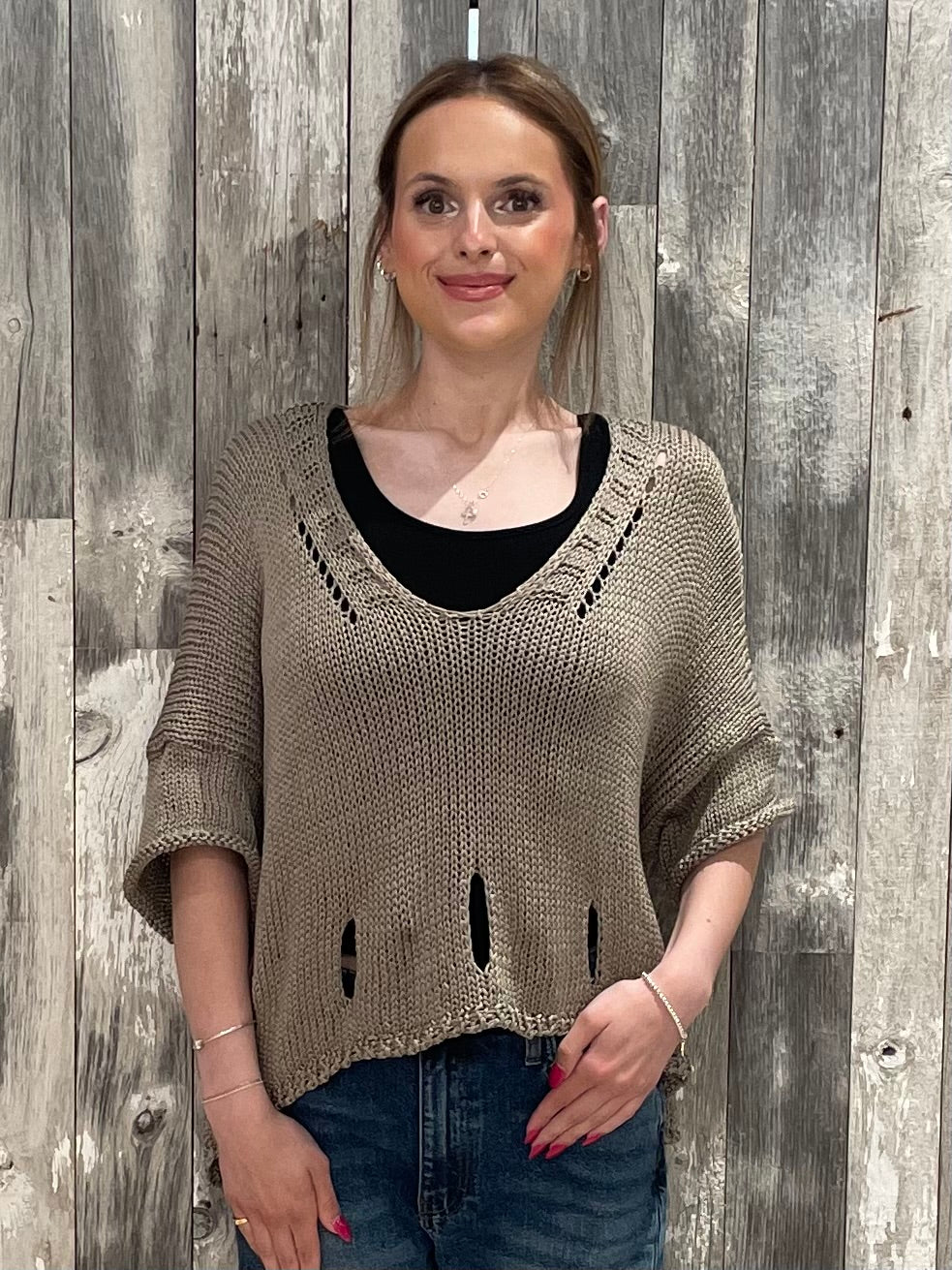Taupe Open-Knit Sweater