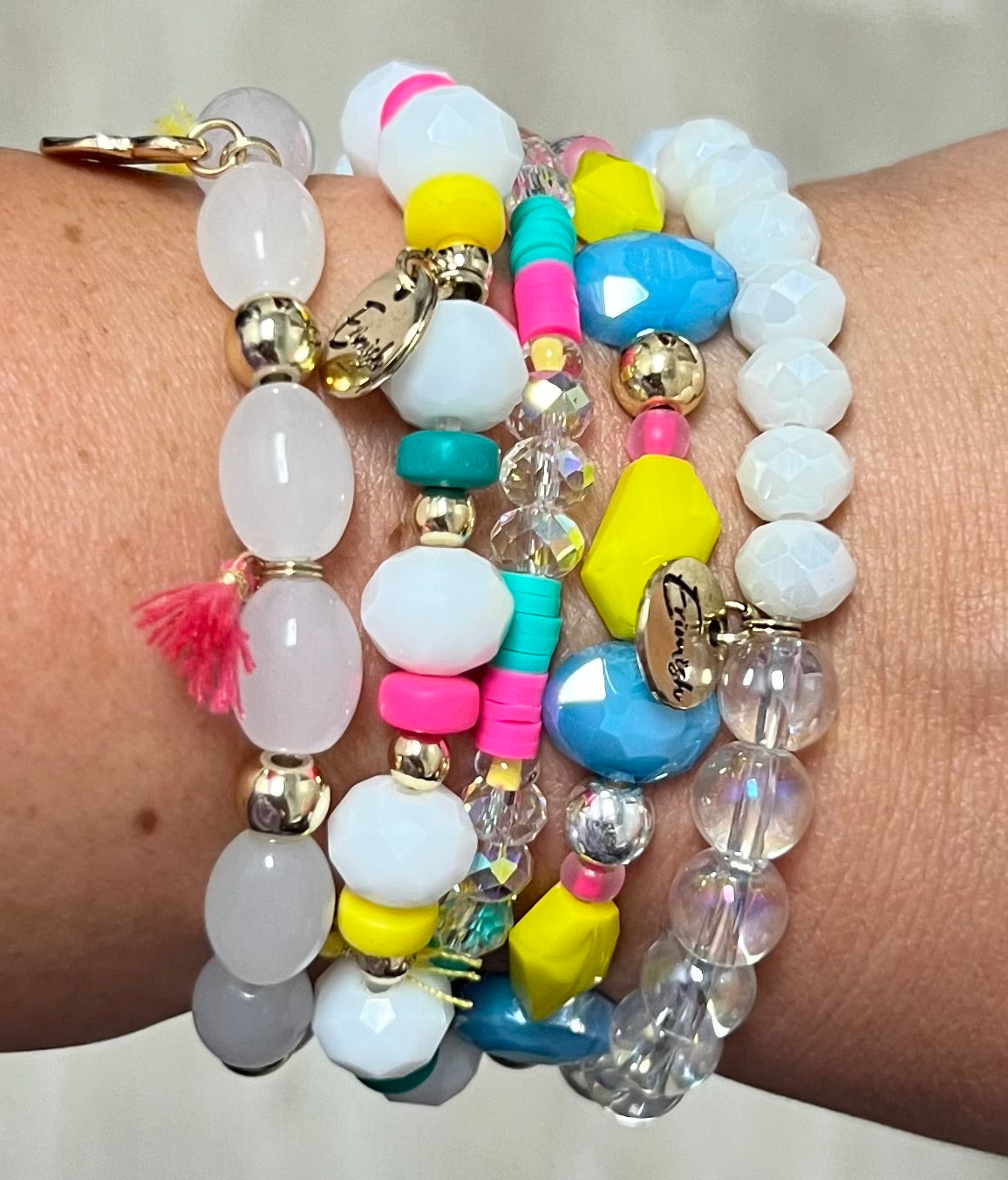 - Brighten your look with the Malibu Sunset Stack, a playful mix of fun and colorful bracelets designed to catch every eye. Perfect for adding a splash of vibrant energy to any outfit, this stack brings a cheerful vibe wherever you go.