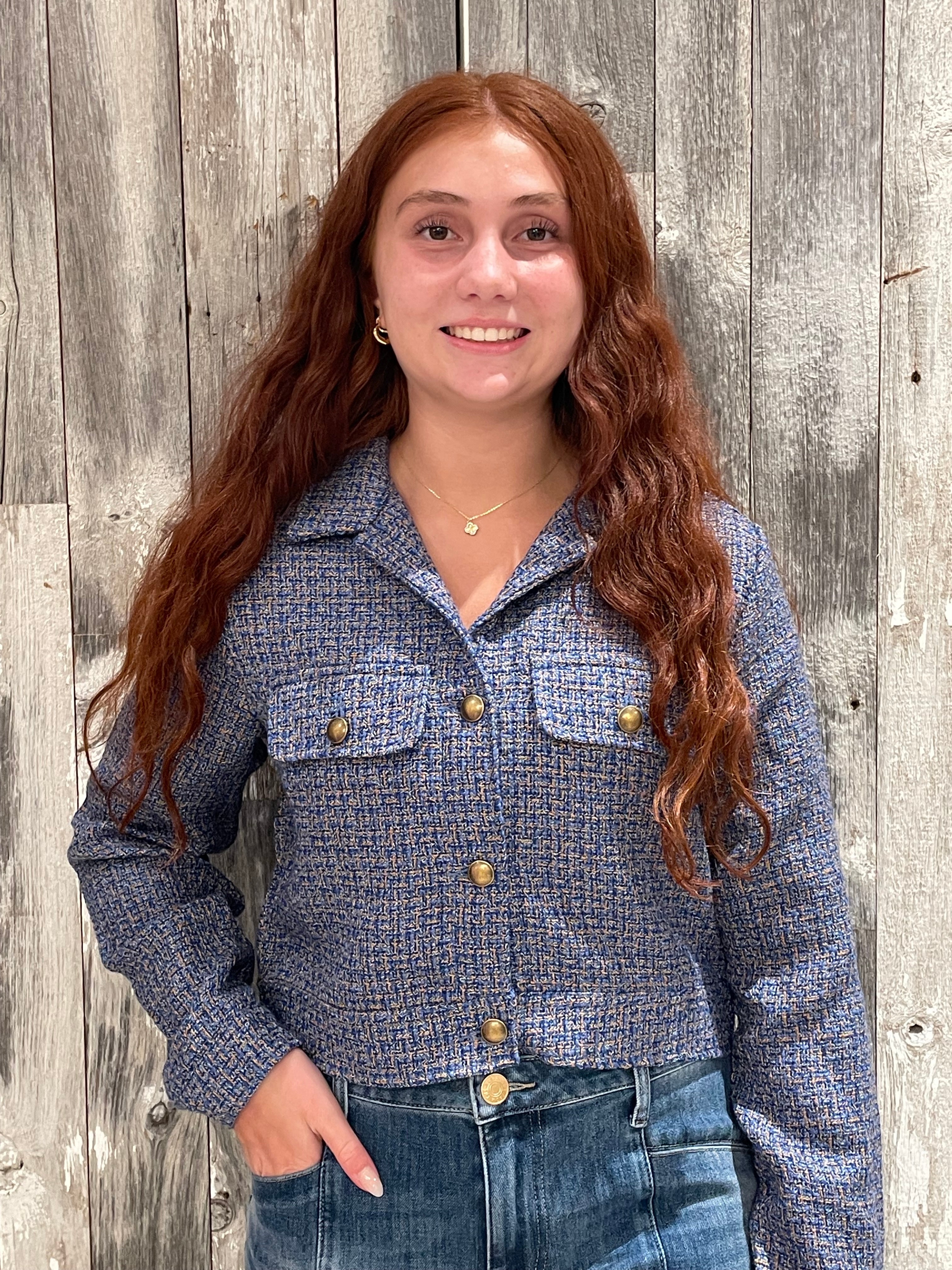 - Design: The Mateo Crop Jean Jacket features a timeless denim jacket design with a trendy cropped cut that hits just above the waist, creating a flattering and fashion-forward silhouette. The jacket is adorned with classic details like a button-down front, chest flap pockets, and buttoned cuffs, giving it an authentic denim jacket feel with a fresh, modern edge. The slightly frayed hem adds a touch of casual, lived-in charm.