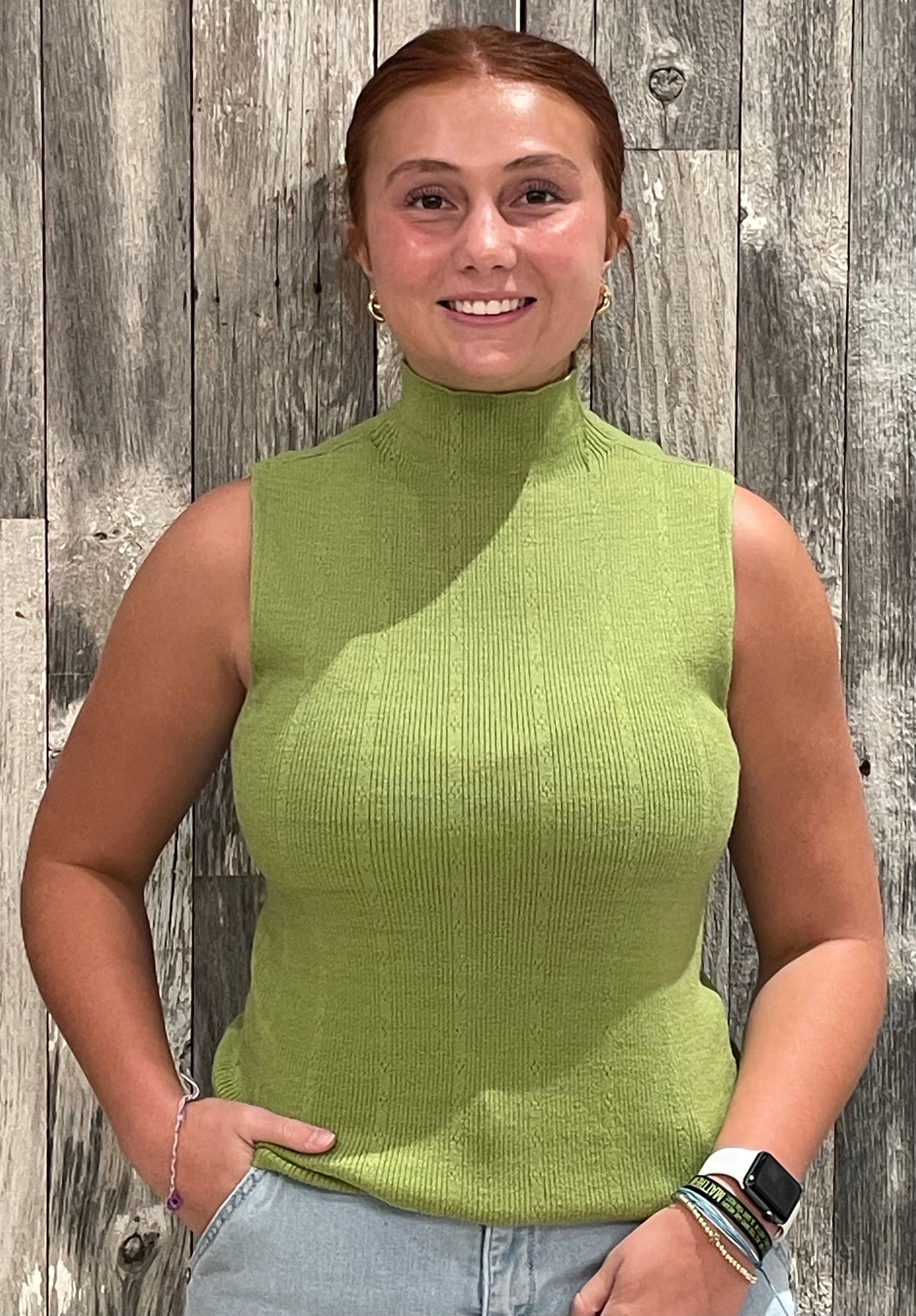 Sophistication meets comfort in this mock neck top, crafted from a soft-touch knit with a delicate texture. The sleeveless silhouette and gently raised neckline offer a modern, streamlined look, while the versatile color palette blends seamlessly into any wardrobe