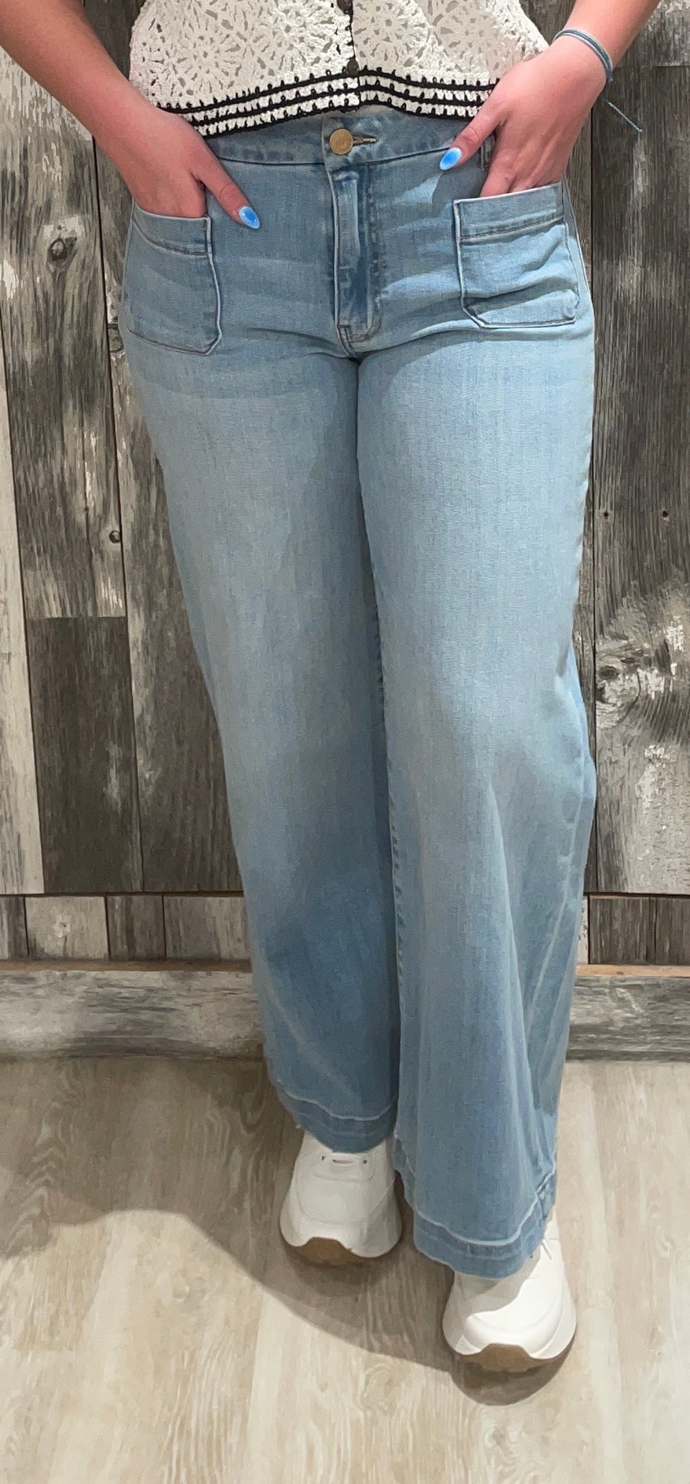 - These pants feature a flattering high rise and bold, dramatic wide legs that give them a striking, retro style. The addition of patch pockets adds both functionality and flair. Perfect for making a fashion-forward statement with vintage-inspired charm.