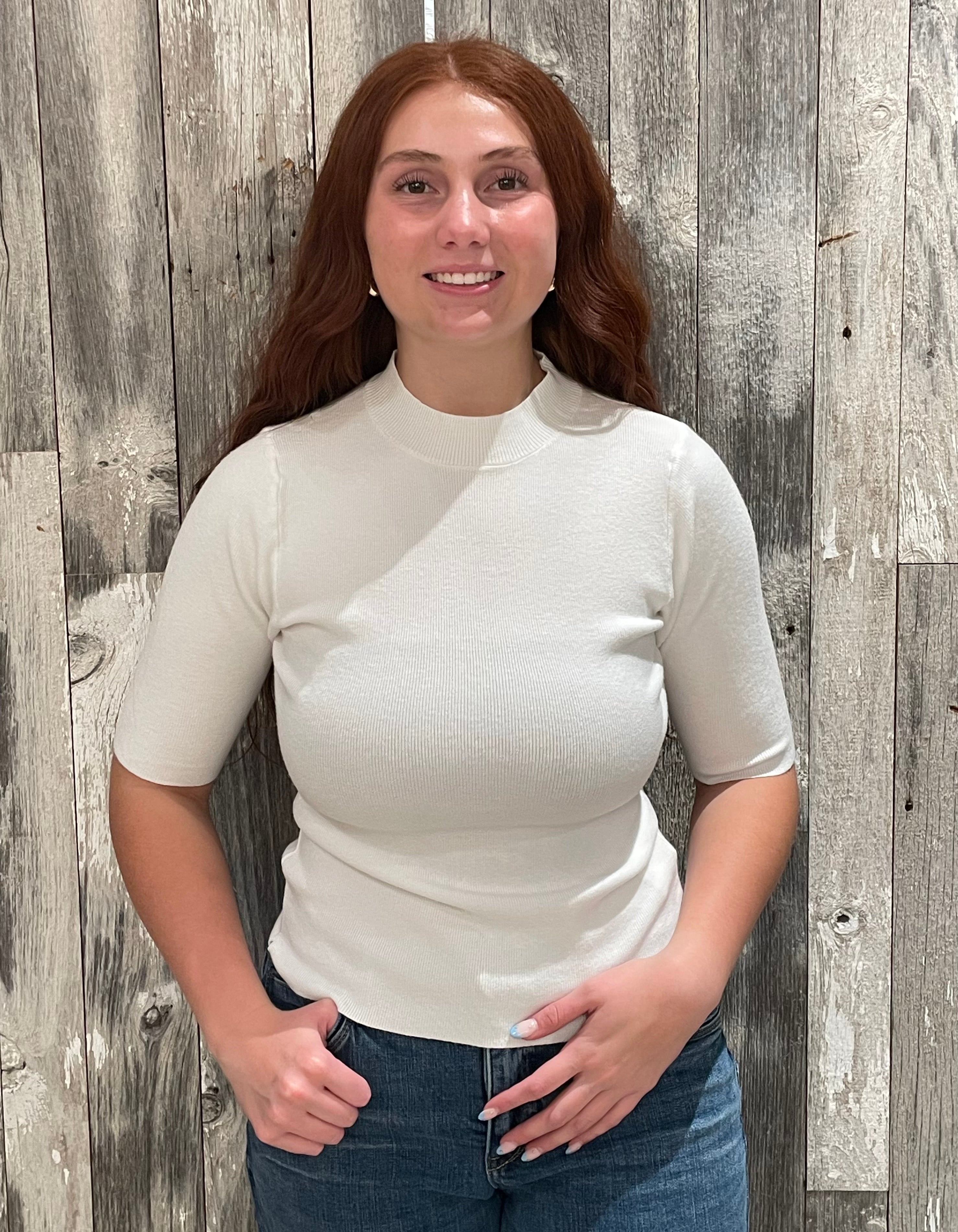 Hip-length—easy to tuck into denim, skirts, or trousers