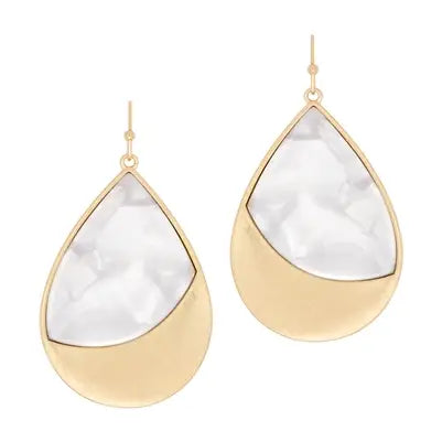 Experience the elegance of simplicity with the Natural Acrylic and Gold Teardrop Earrings. These 1.75" dangle earrings are a sophisticated blend of natural acrylic and gold, embodying the latest trends in fashion jewelry.
