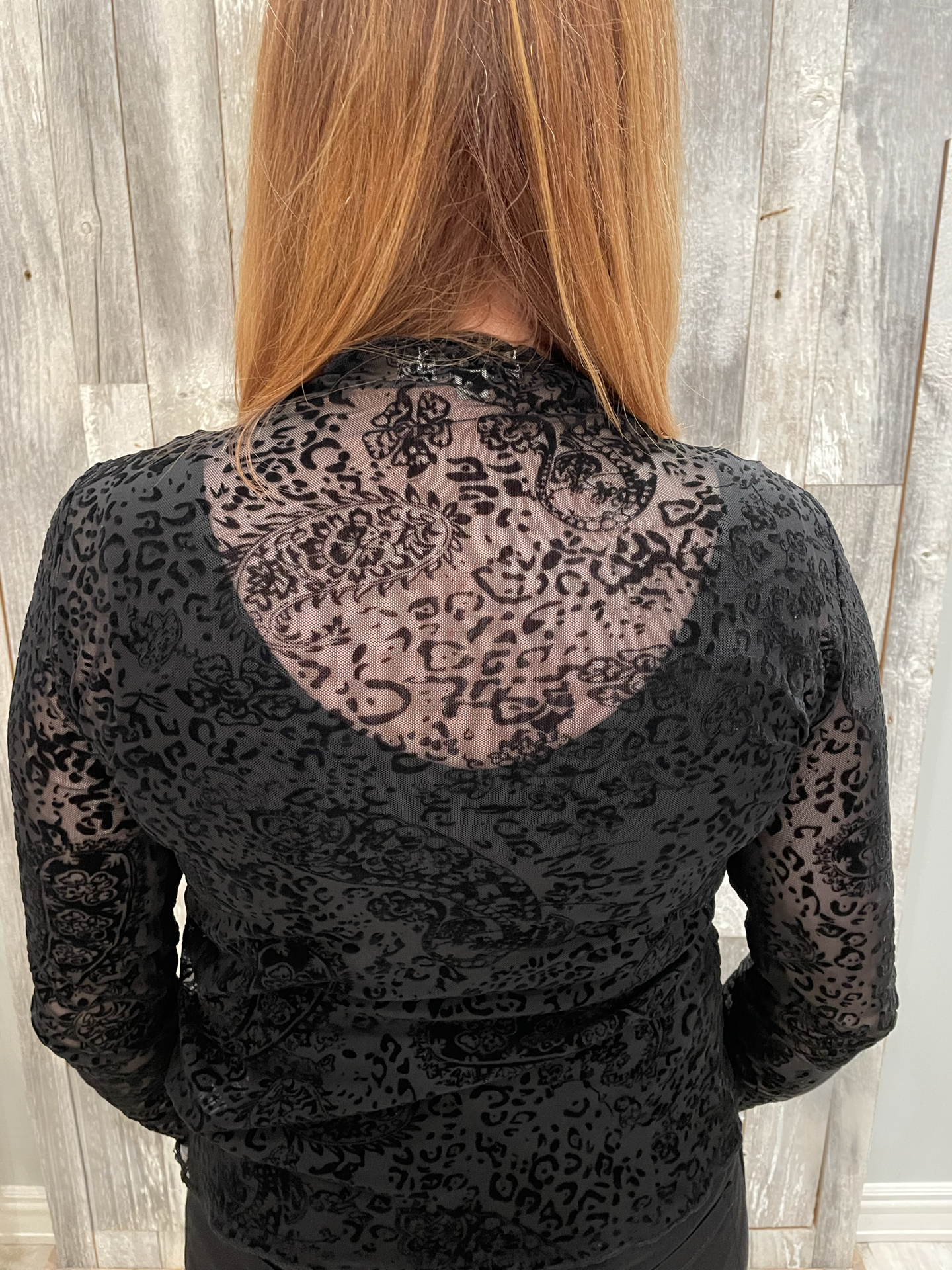 Material: Sheer lace with an intricate paisley-inspired pattern