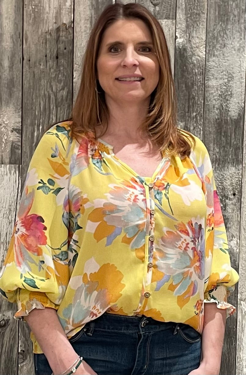 The Printed Blink Button Down Woven Blouse brings effortless elegance to your wardrobe. Featuring a floral print design, smocked and notched neckline, and textured lightweight fabric, this blouse is both stylish and comfortable. Perfect for casual outings or dressed-up occasions, it pairs beautifully with jeans, skirts, or trousers.