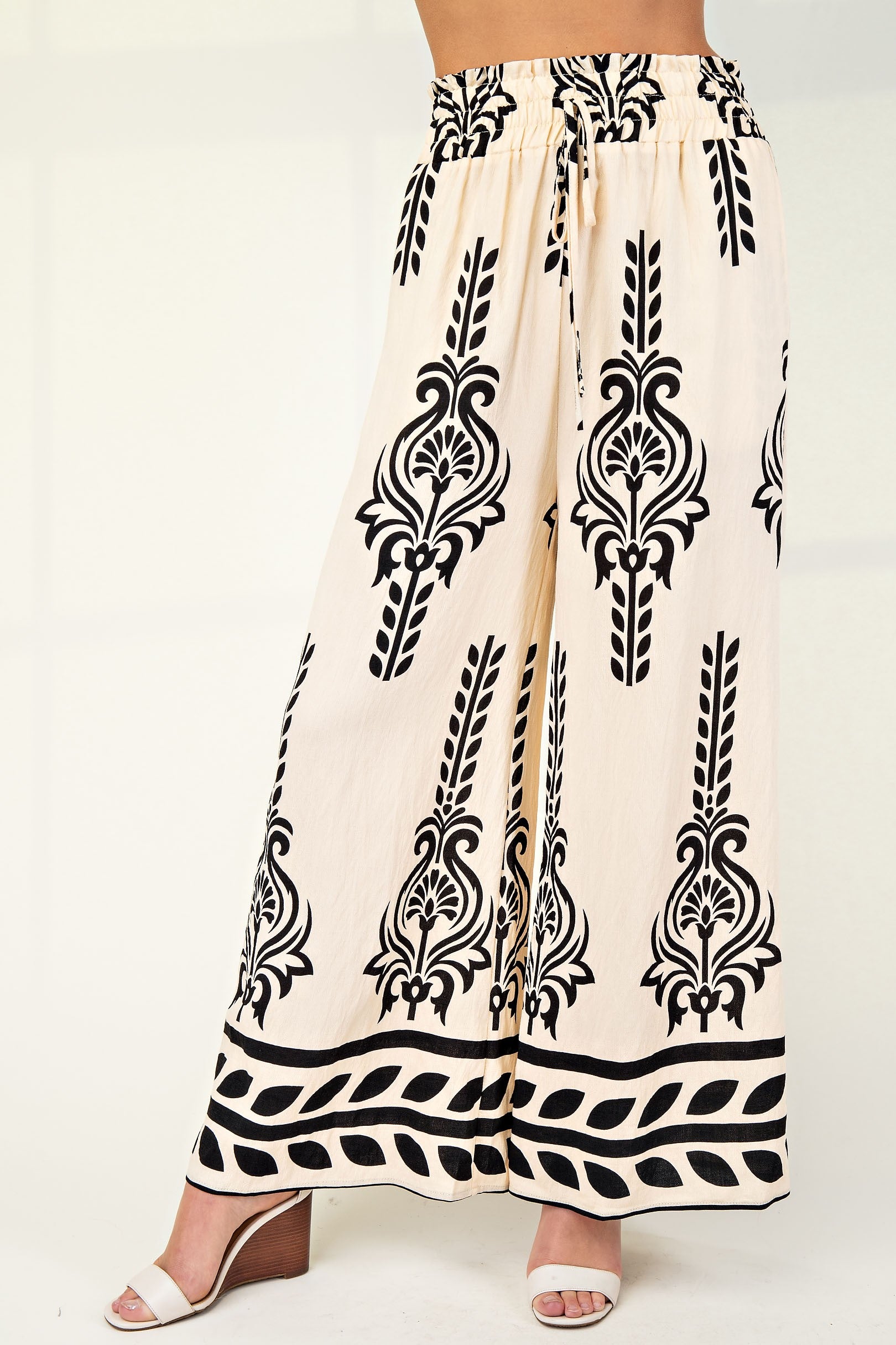 Printed Wide Leg Long Pants With An Elastic Waist *Final Sale*