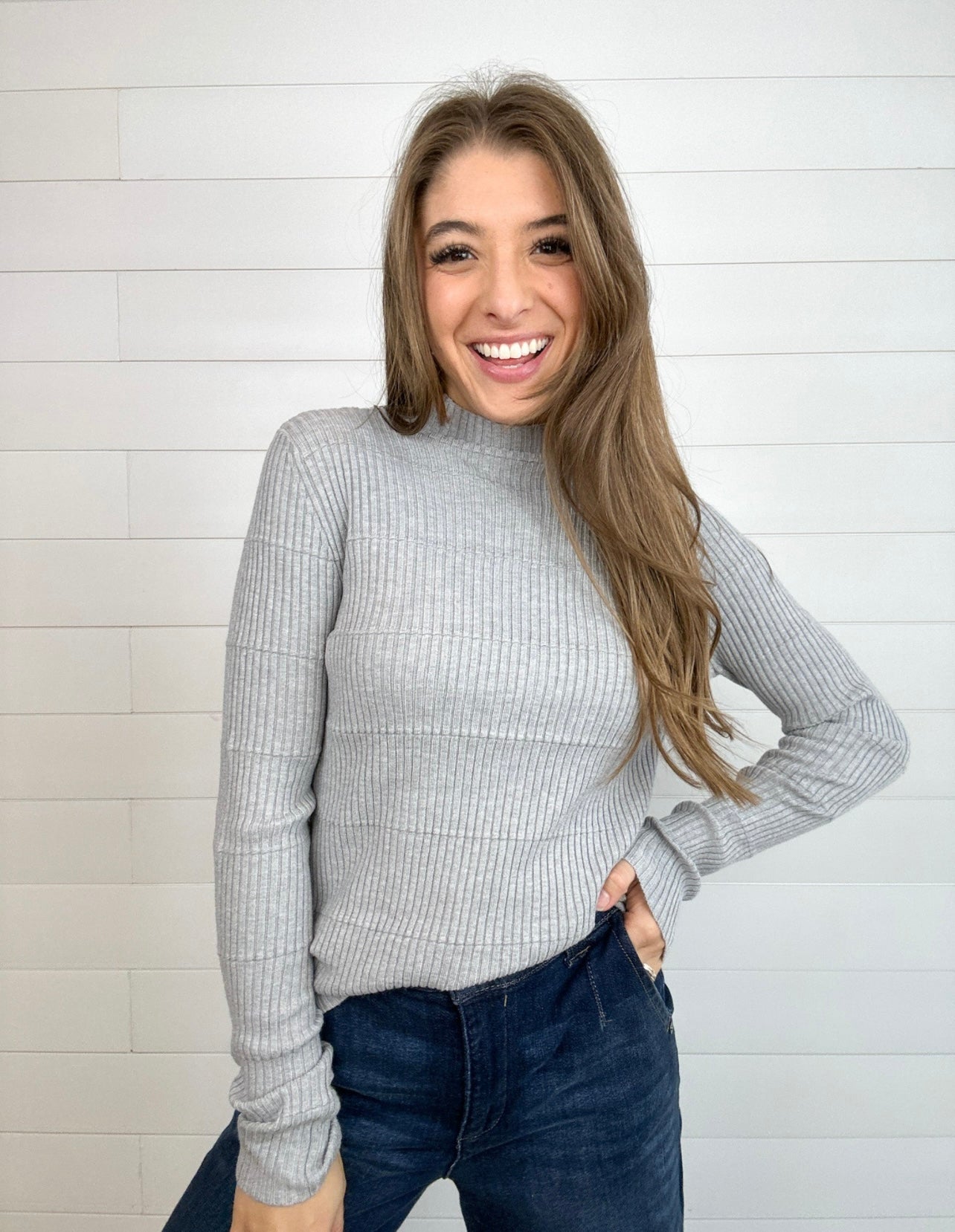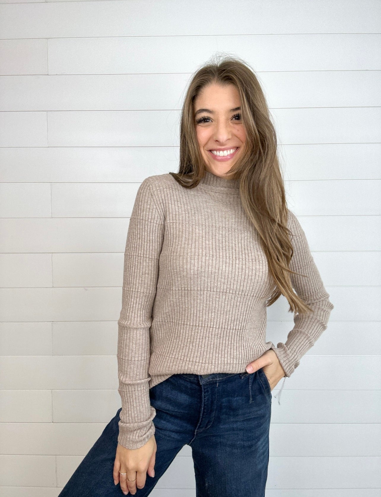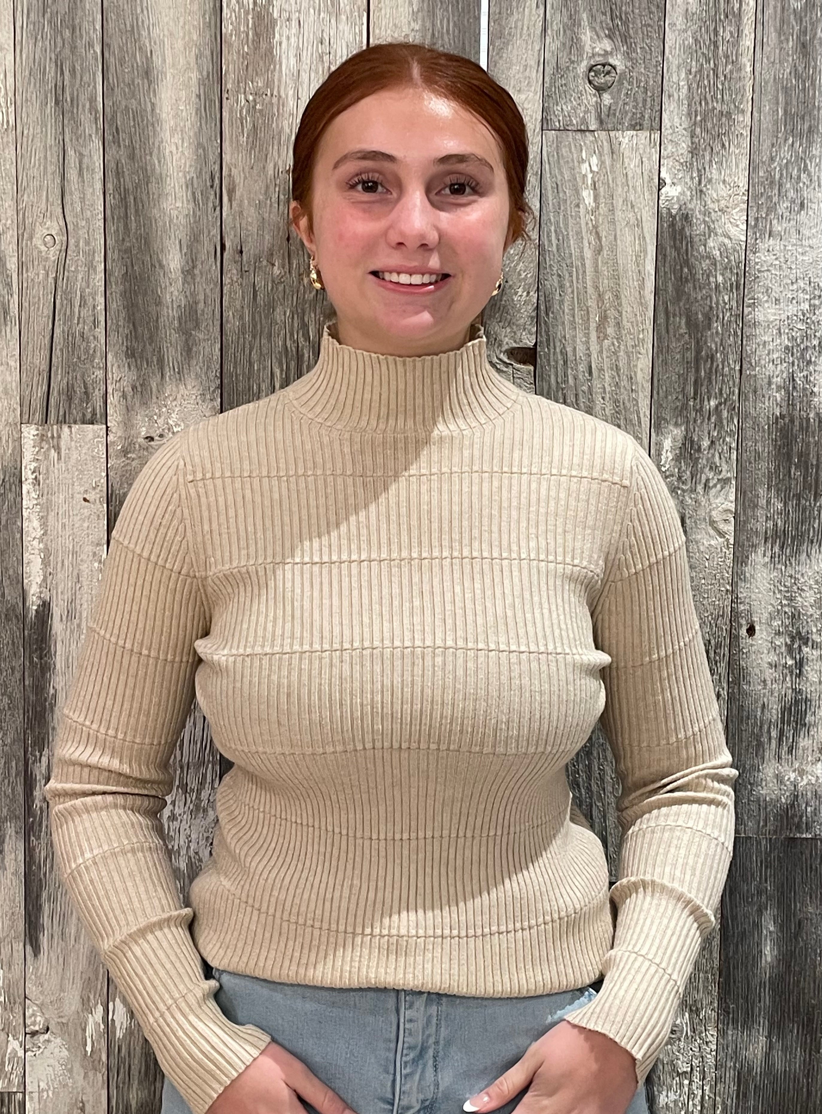 Ribbed Long Sleeve Mock Neck Sweater