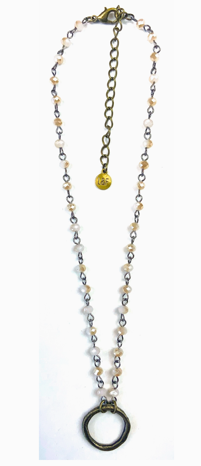 The Rosaried & Ring Beaded Necklace combines delicate beads with a bold ring accent, creating a modern and elegant accessory.