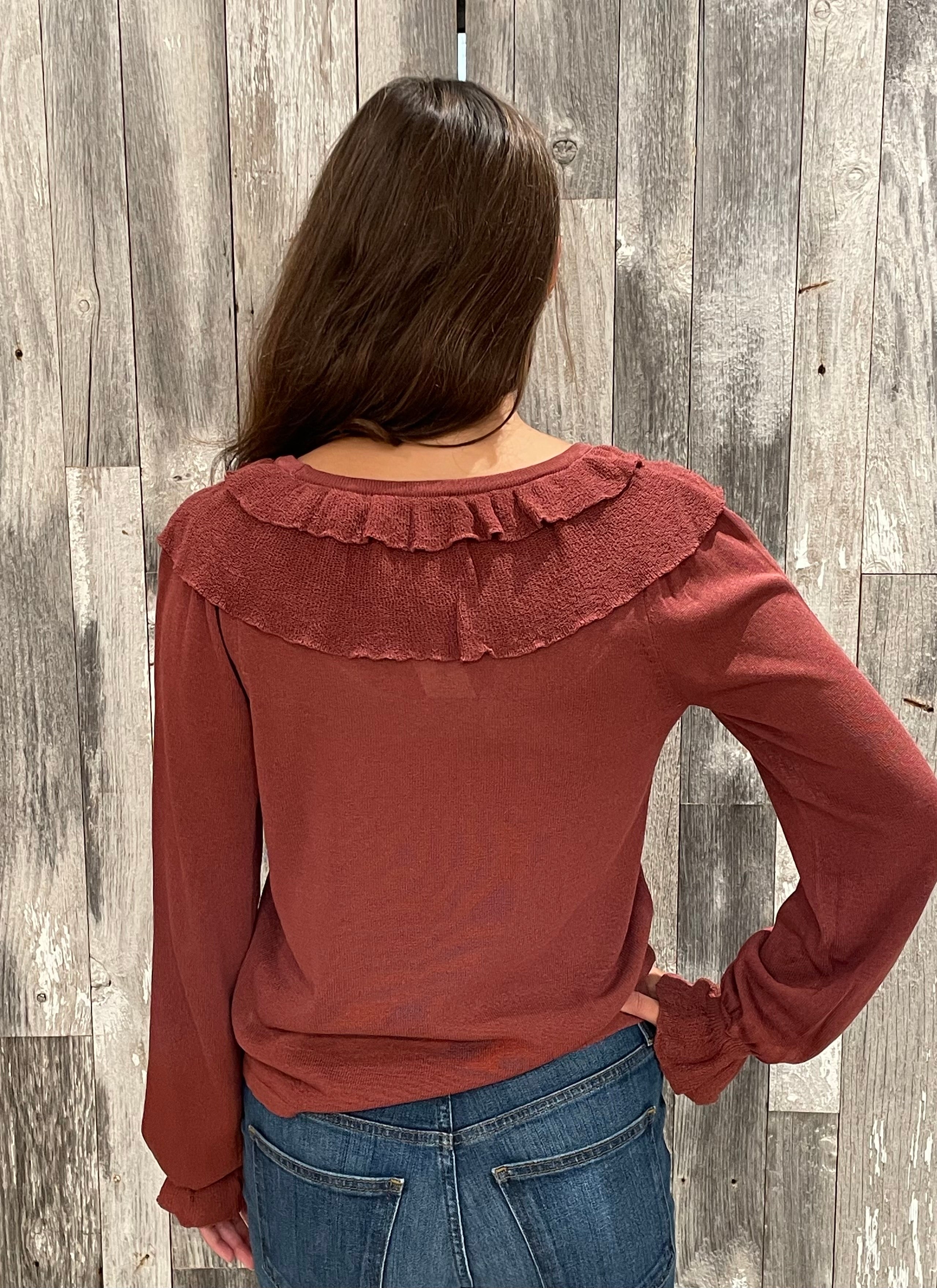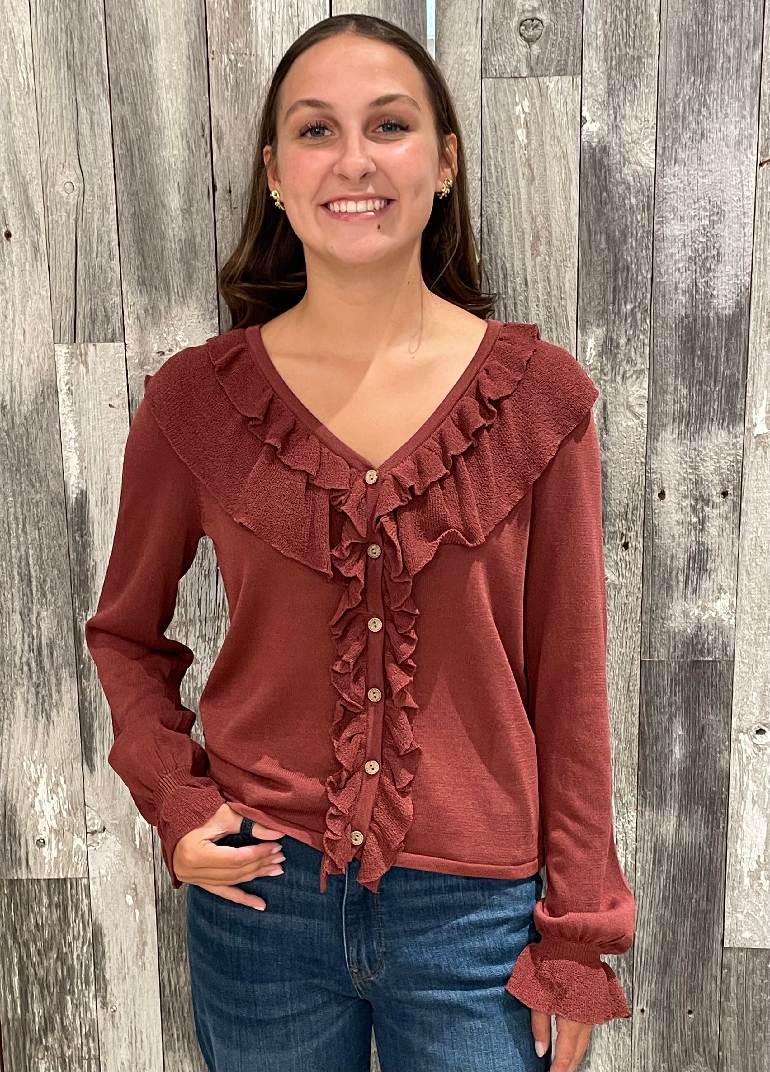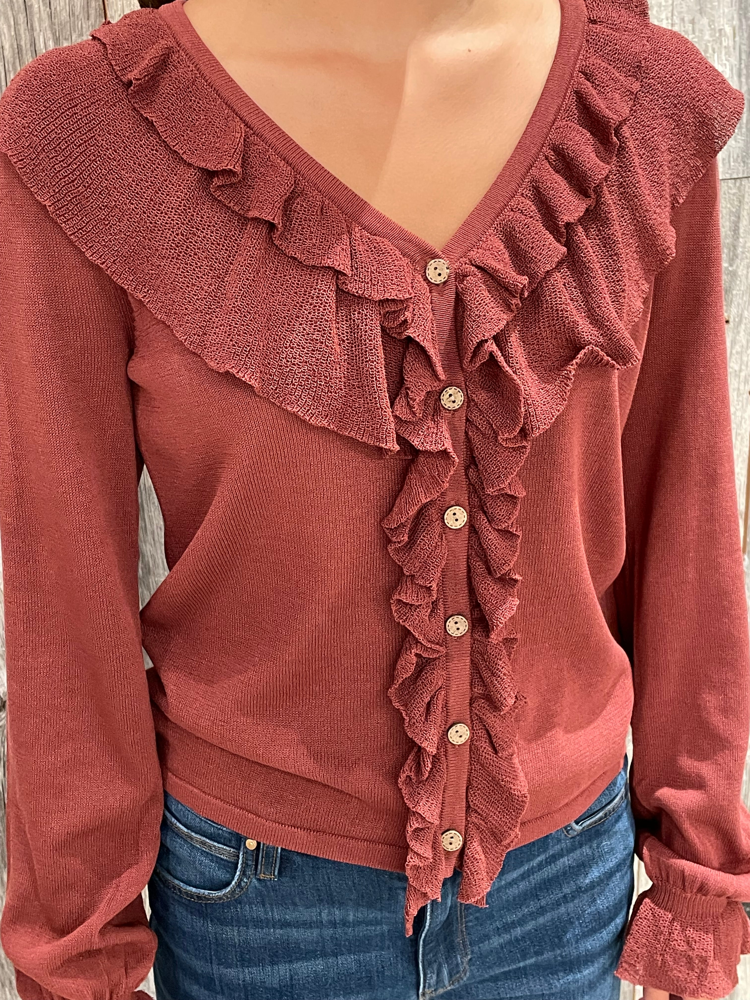 Ruffle Fine Gauge Button Front Top