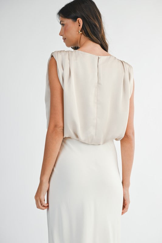 Blouson bodice with a banded/elasticized hem for a cropped effect