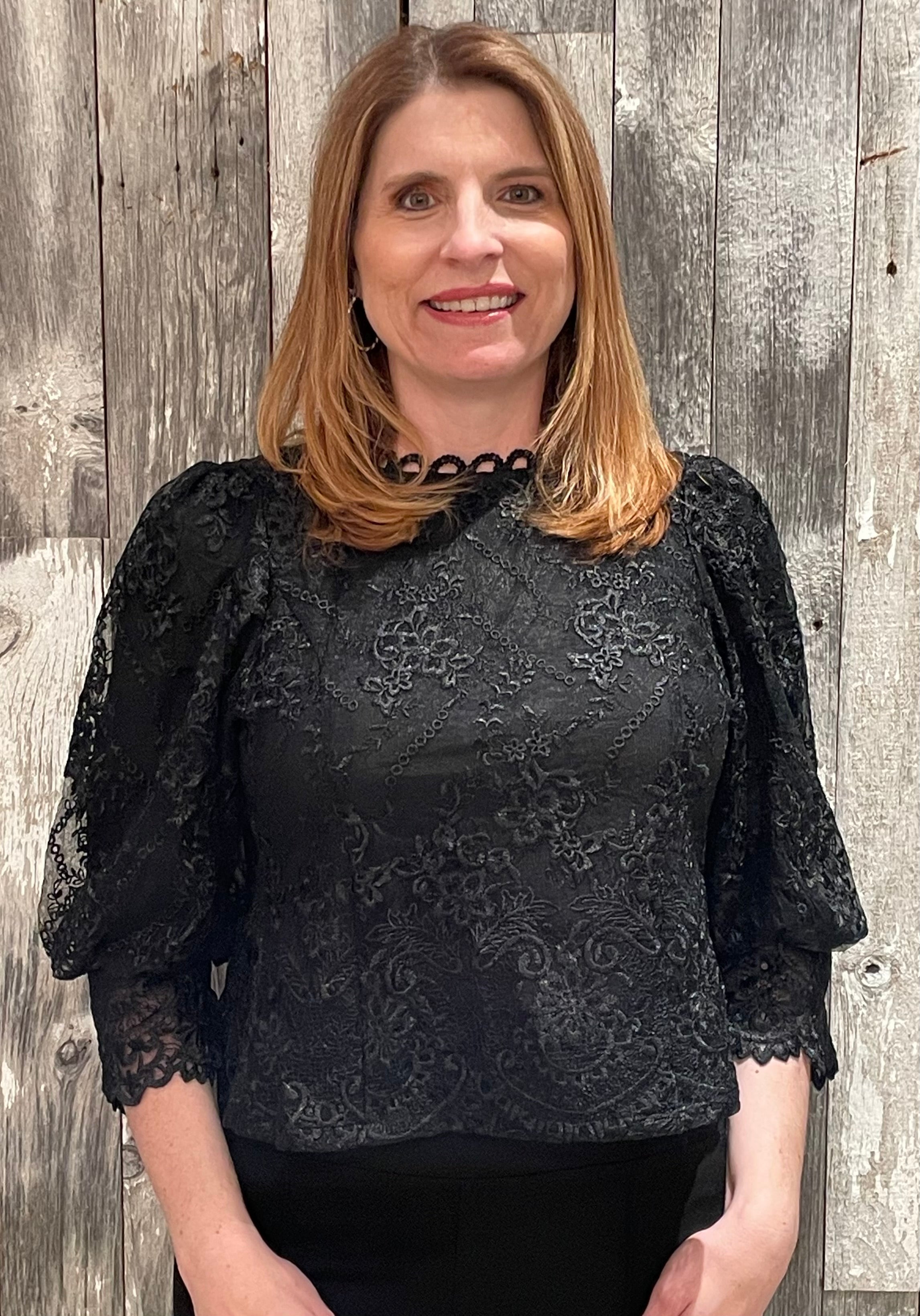 This scallop lace blouse adds a touch of elegance to your wardrobe with its intricate lace detailing and puff sleeves. The soft rayon-nylon blend in the body complements the delicate lace sleeves, making it a perfect piece for both casual and dressy occasions.