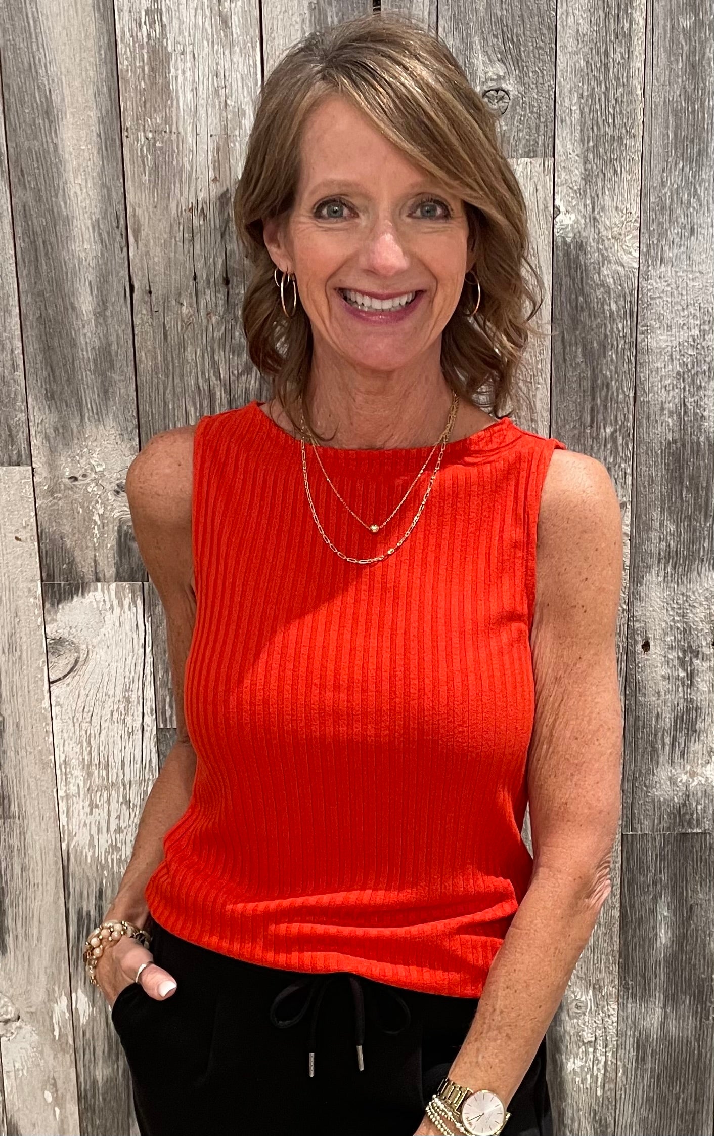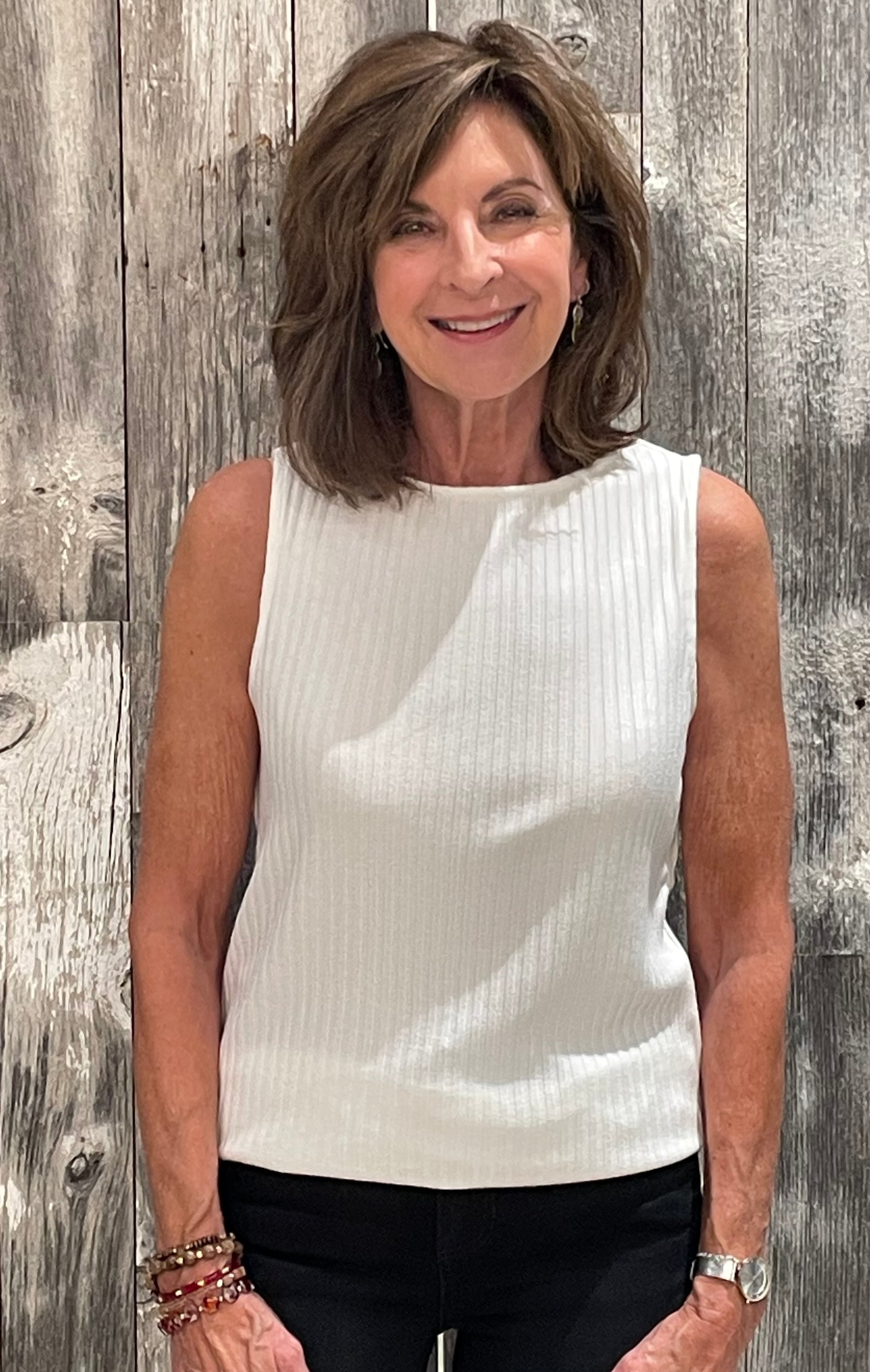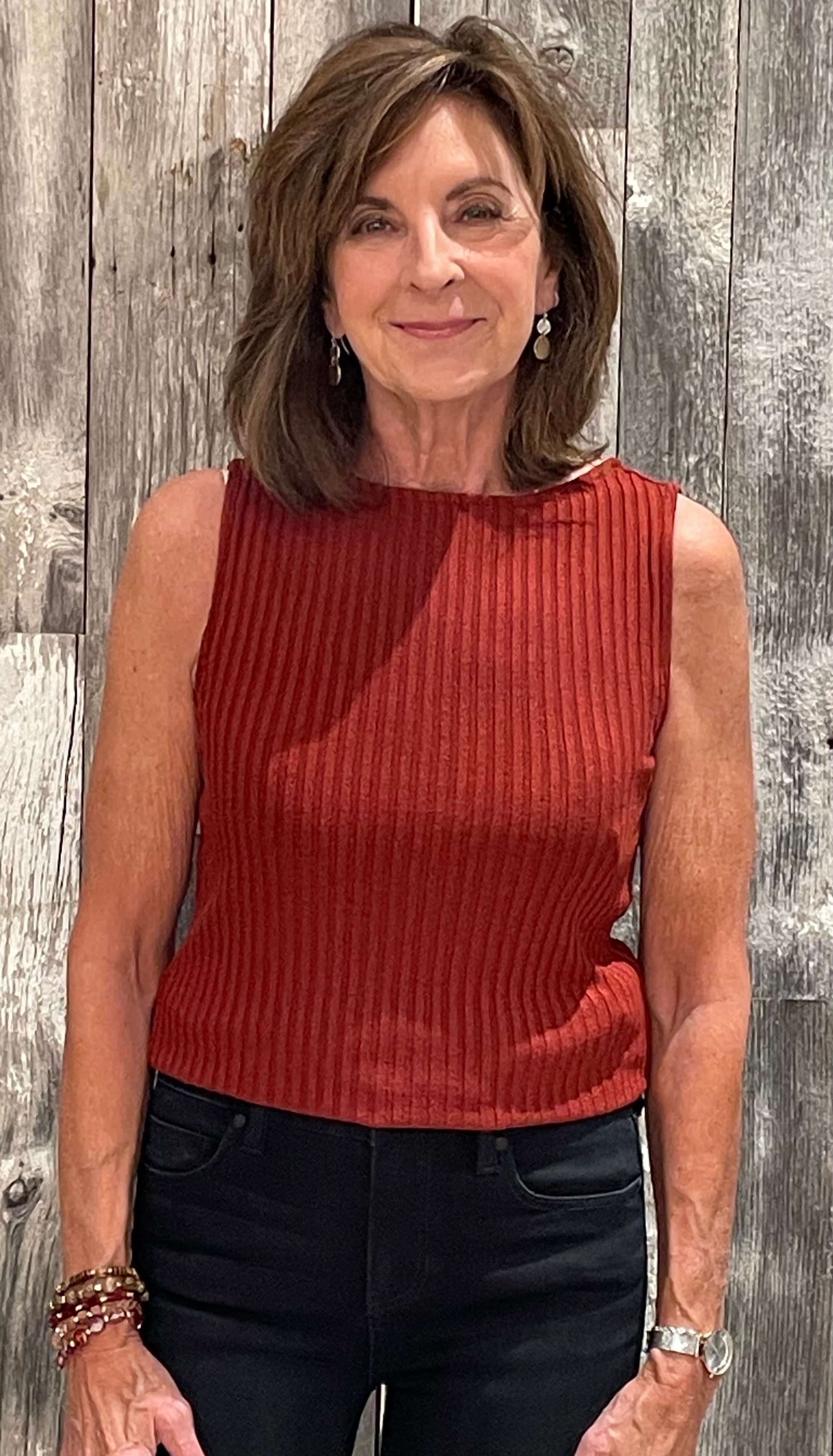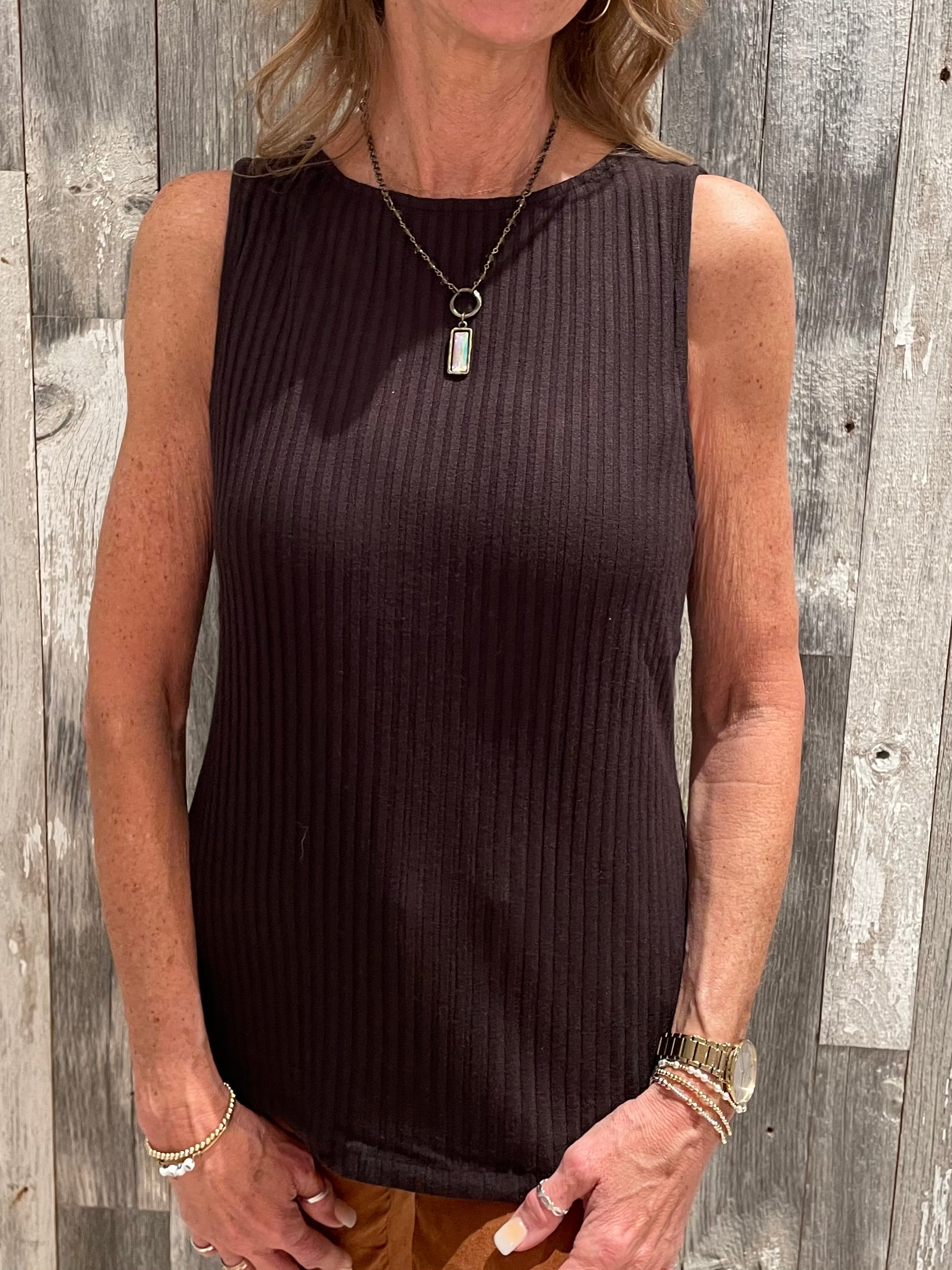Liverpool Sleeveless Boatneck Rib Knit Top