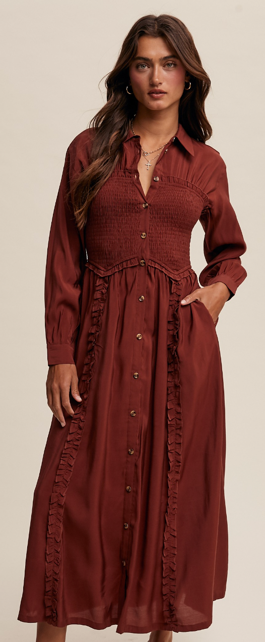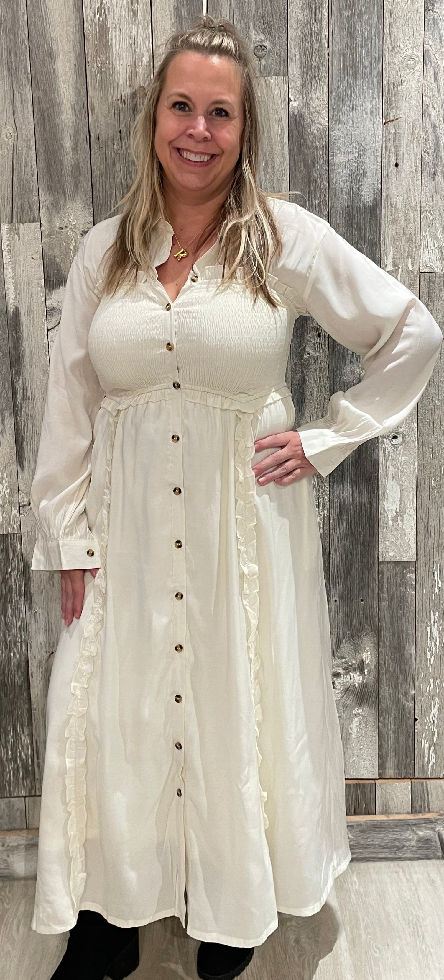 - Ruffle Detailing: Delicate ruffle accents along the neckline and hem create a feminine, romantic look that enhances the overall design.