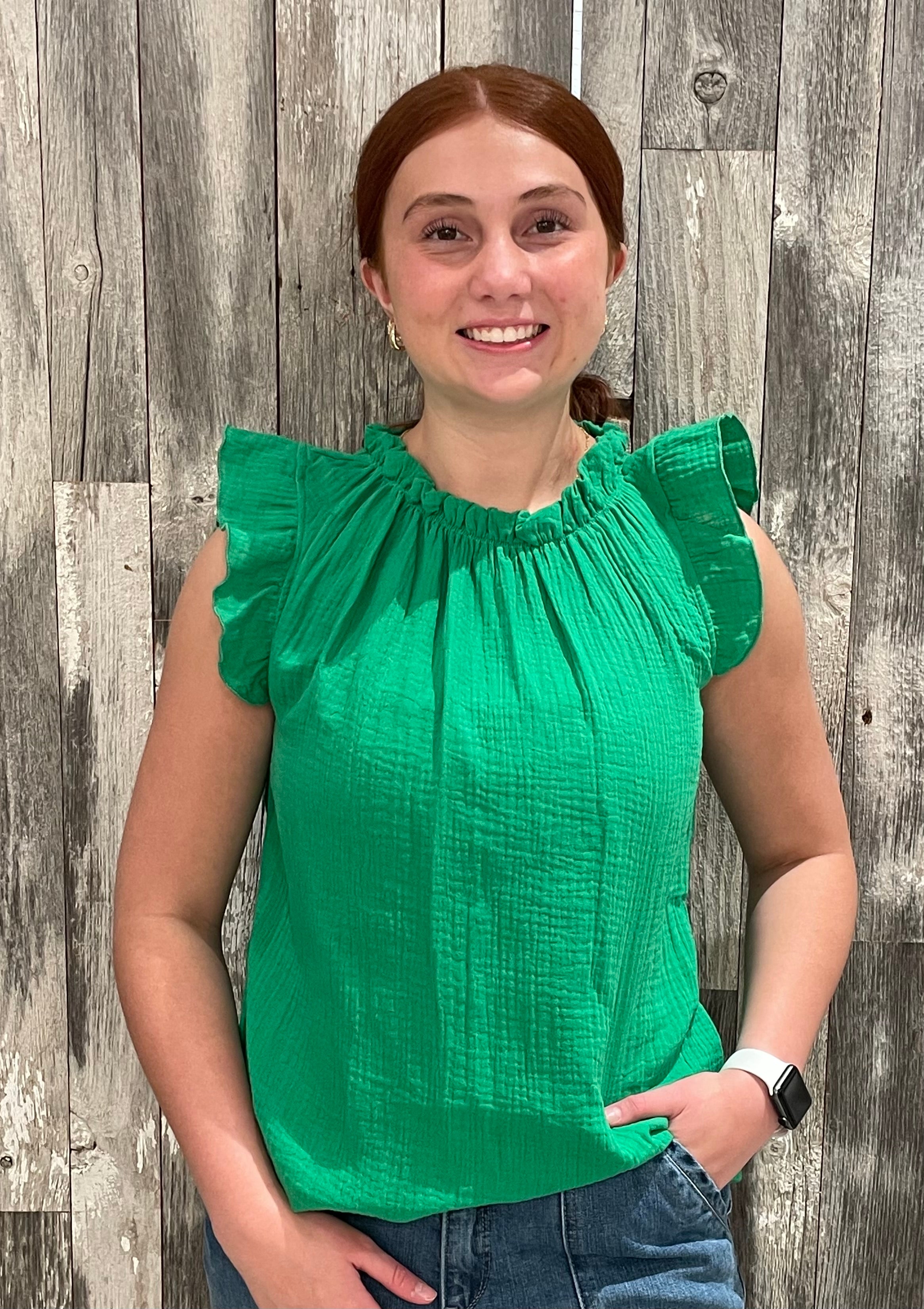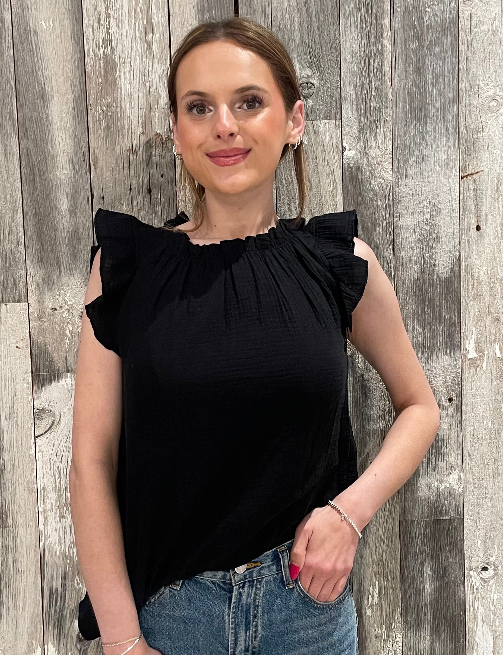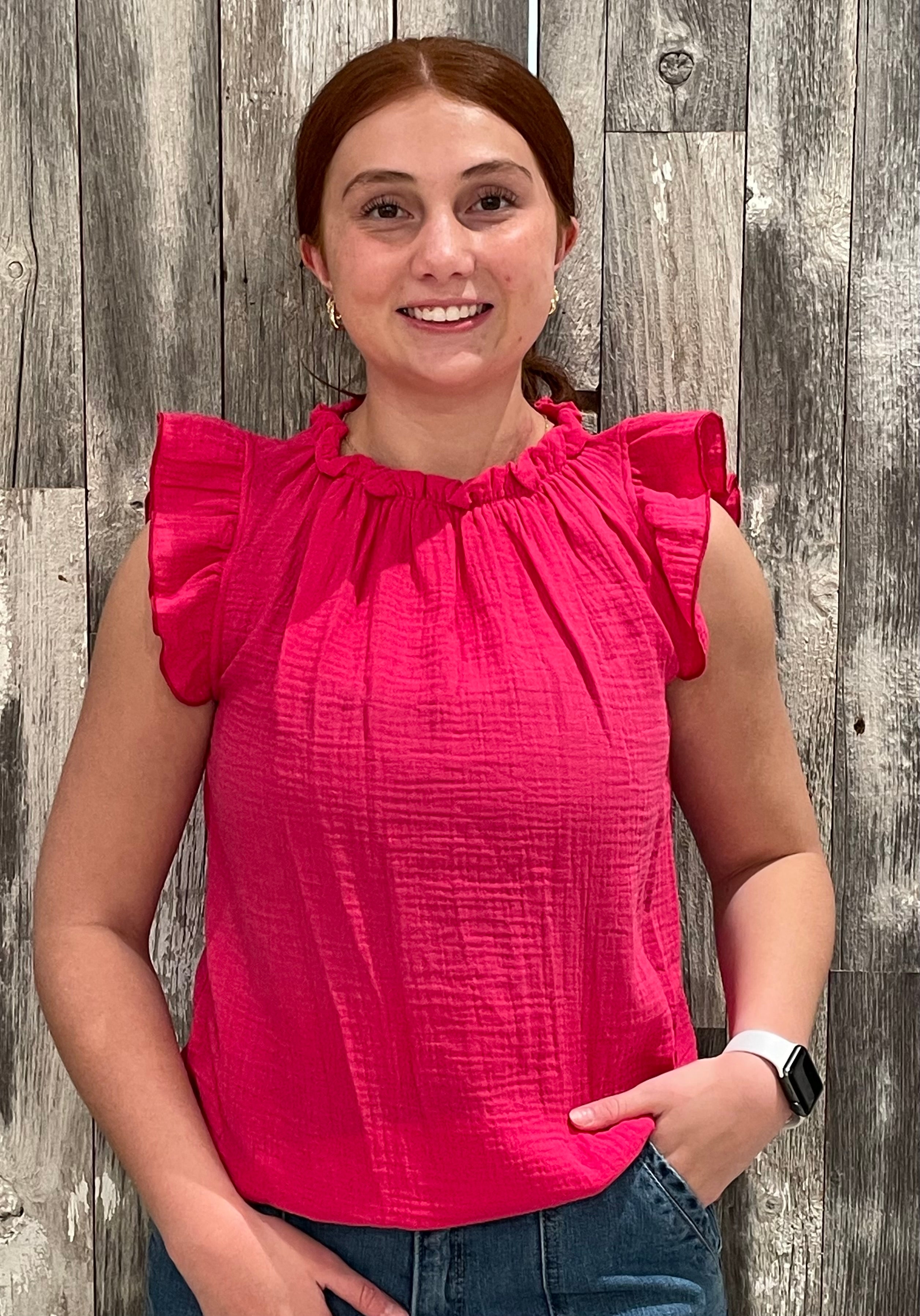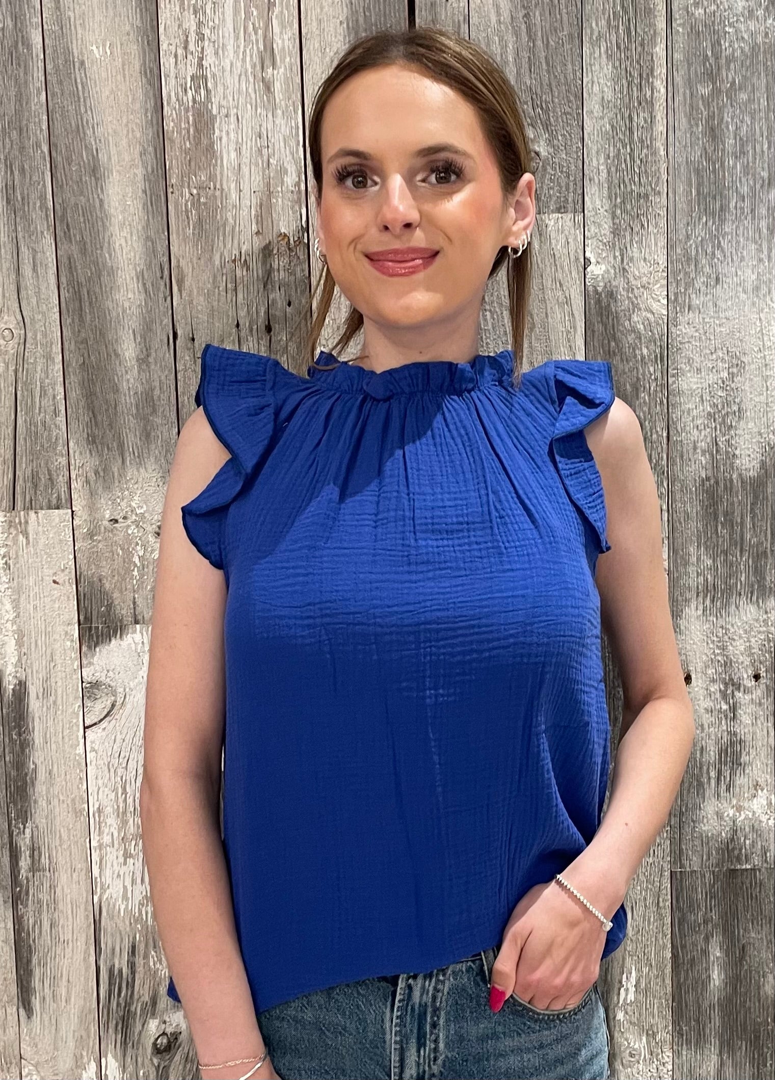 Sleeves: Sleeveless with flutter shoulder detail for a feminine touch